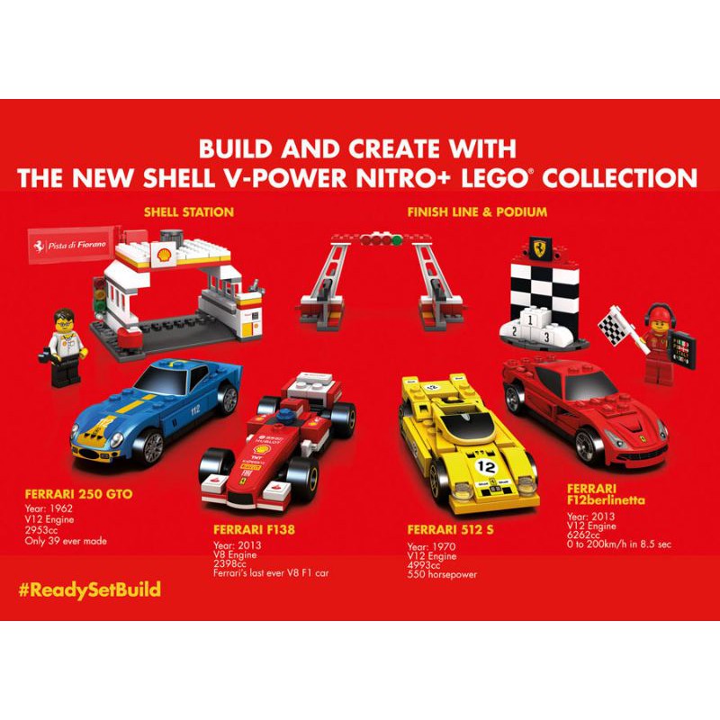 Shell Lego 2015 Ferrari F1, Shell Tanker, Petrol station, Podium and finish line
