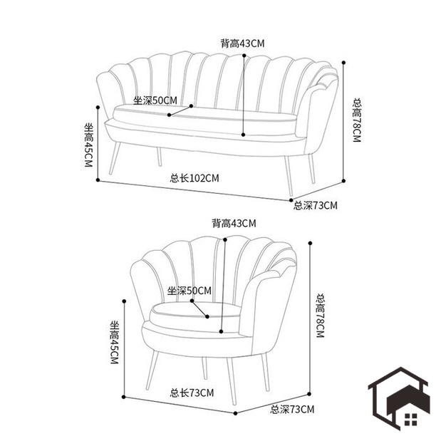 Shell Sofa Nordic European Luxury Modern Sofa Velvet 1/2/3 Seats