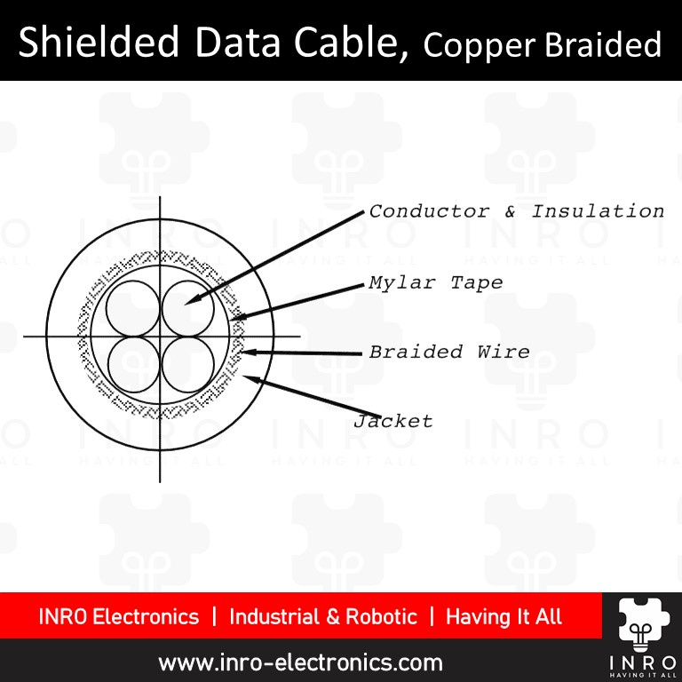 Shielded (Copper braided) Multi-conductor Data Transmission Cable, for D-sub connectors, UL2464 24AWG, 4 cores (by roll)
