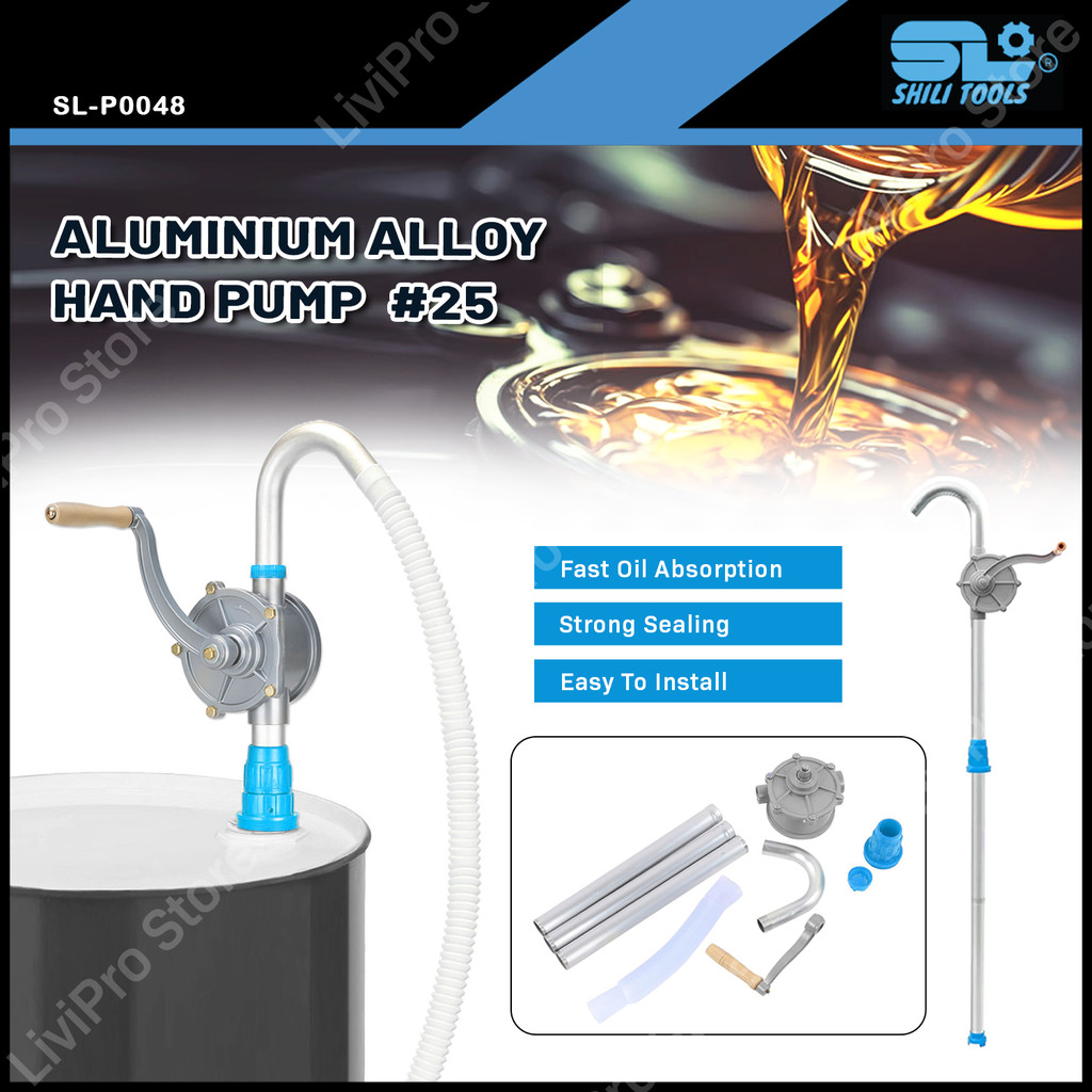 Shili Tools Aluminium Alloy Hand Pump Aluminum Hand Rotary Oil Fuel Diesel Pump Barrels Tank Drum Suction Tool