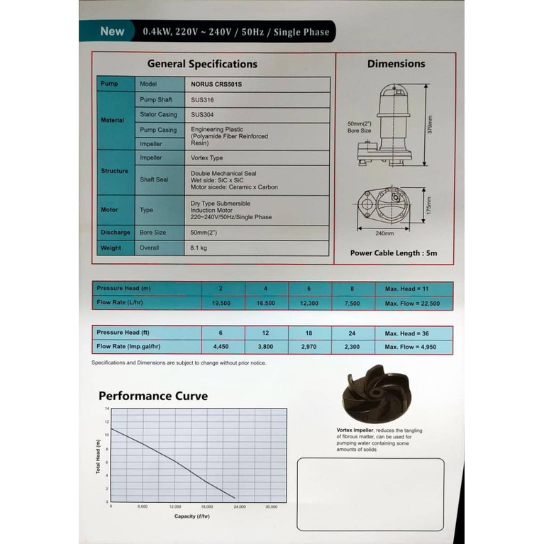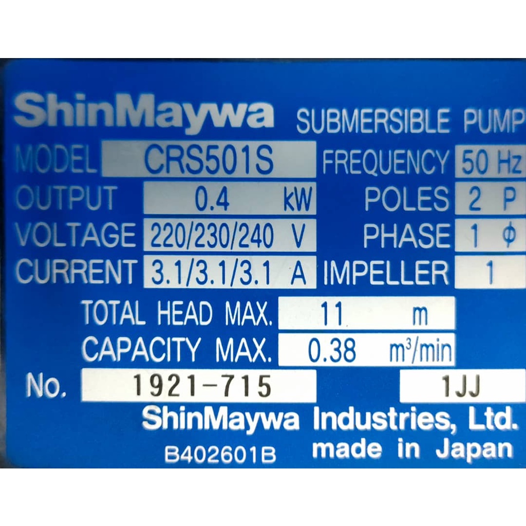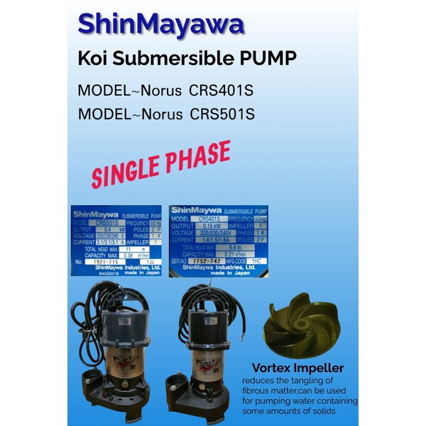 ShinMaywa Koi Submersible Pump ( 150W~ 400W )Wastewater - Pam Kolam Ikan Kebun - Dewatering Water Pump (MADE IN JAPAN)