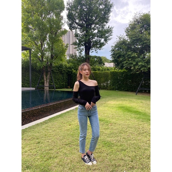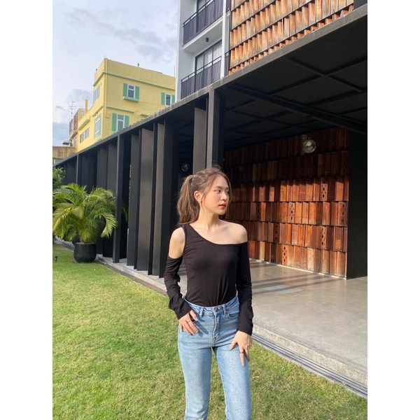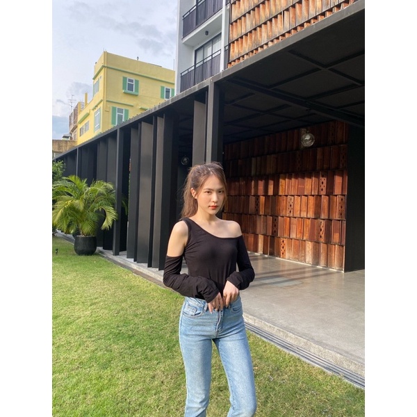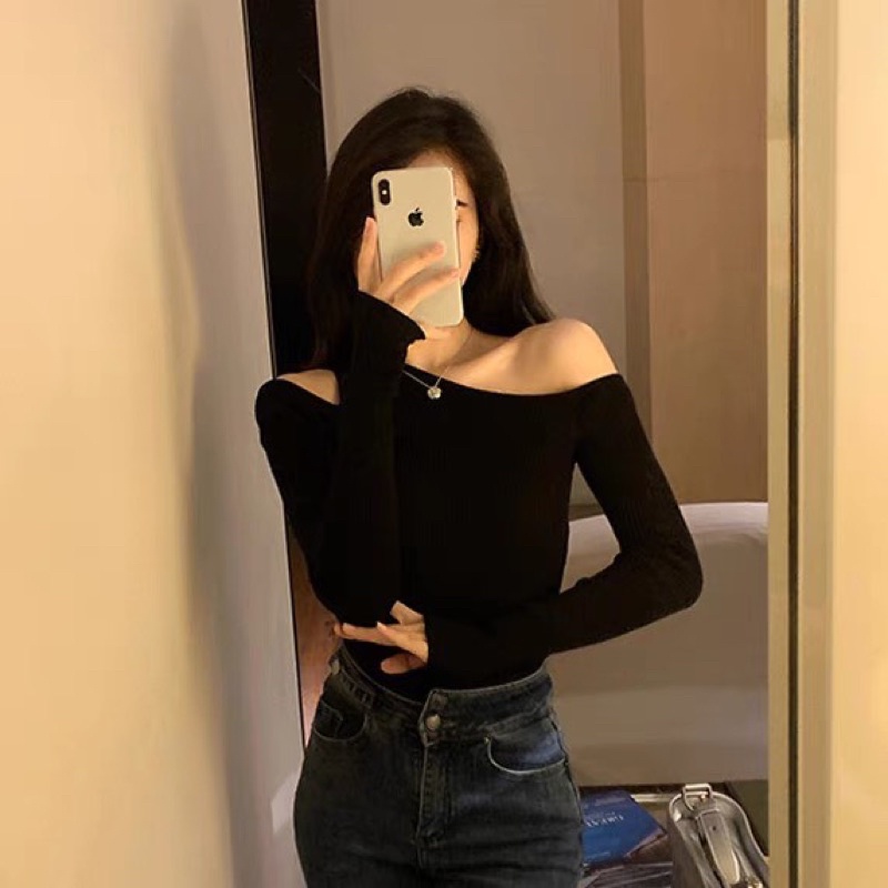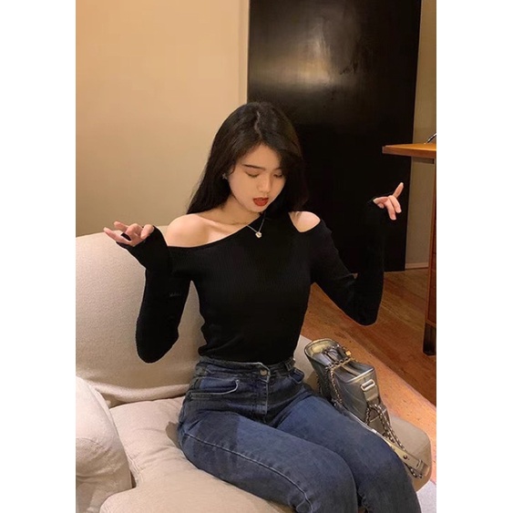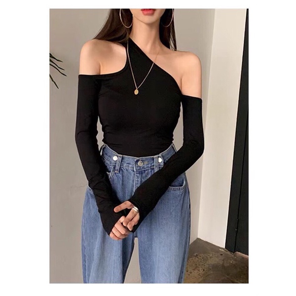 Shirt showing shoulder, stylish straps, scratch line, don't miss it!!!