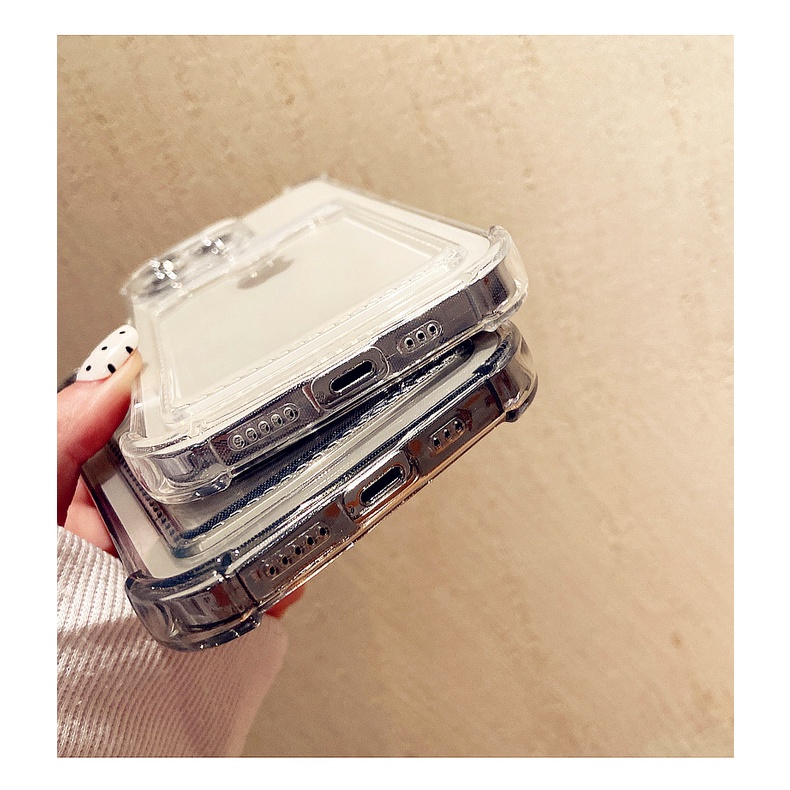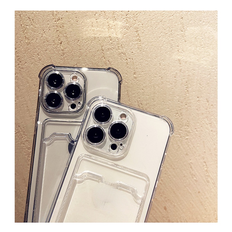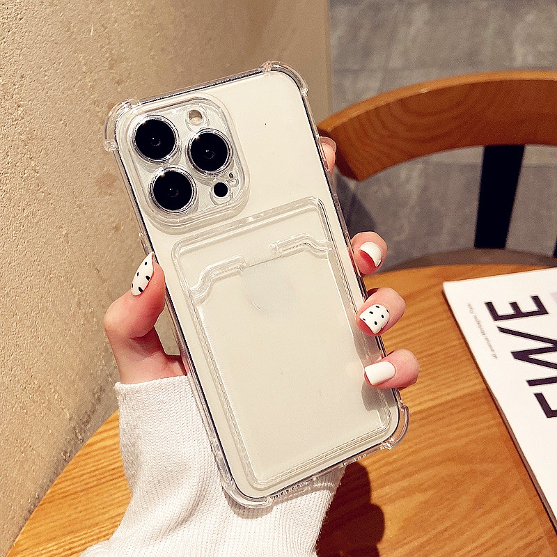 Shockproof Transparent Case With Card Holder For IPhone 17 Air 16 15 14 6/6s 6plus 7/8 SE 2020 7P/8Plus X XS XR 11 12 13 Mini Pro Max Black Soft Casing AT0226