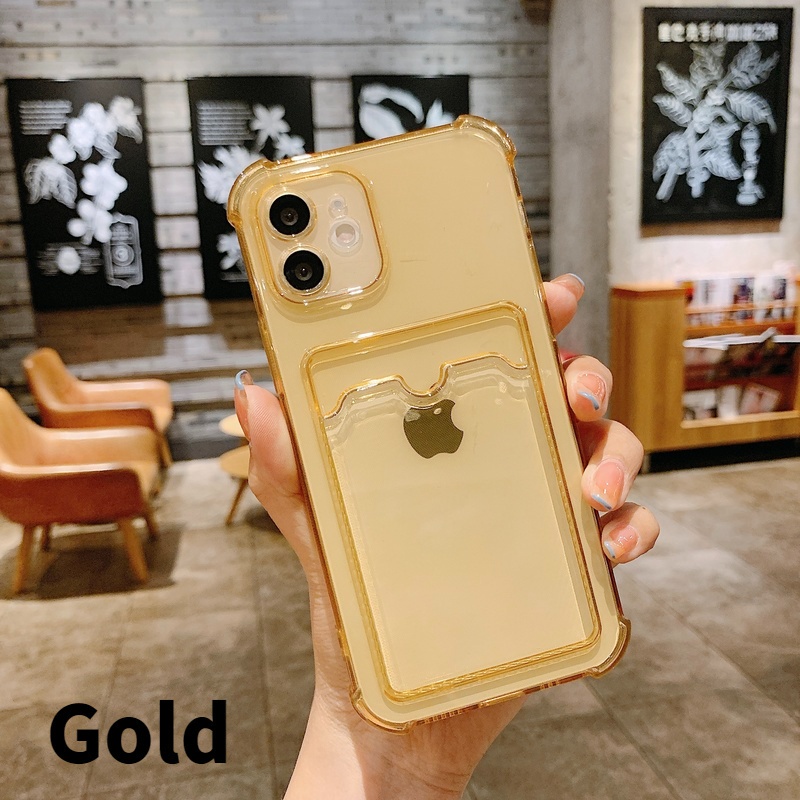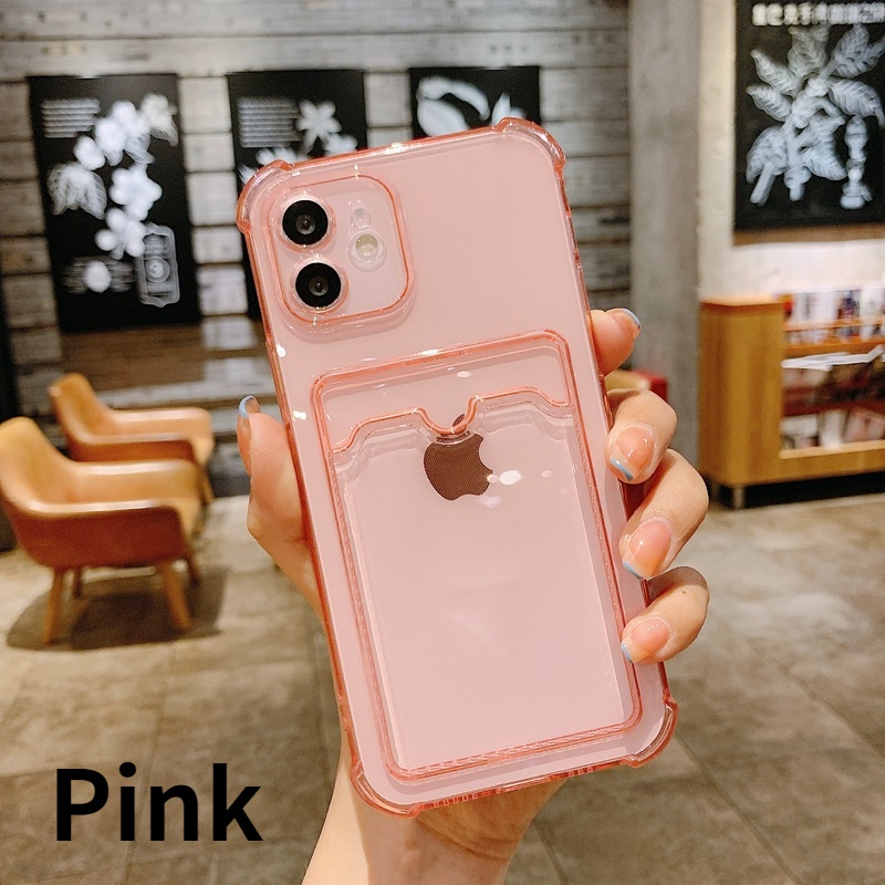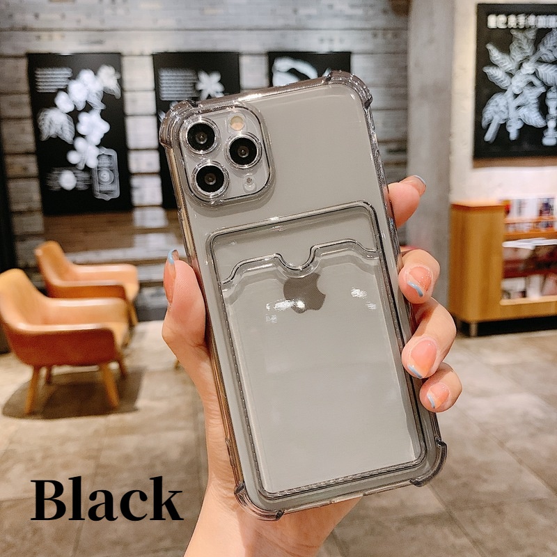 Shockproof phone case Casing iPhone 13 Pro Max 12 Pro Max 11 Pro Max Transparent Shockproof Silicone Lens Protection Card Holder Back Cover