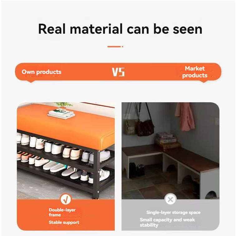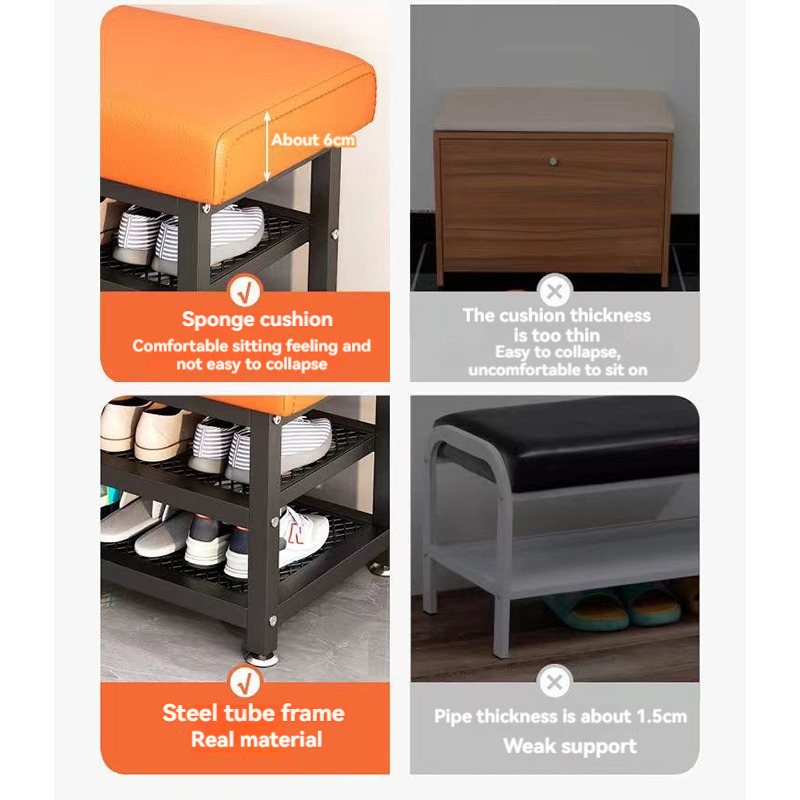Shoe Changing Bench Household Door Shoe Storage Iron Cushion Shoe Rack Door Shoe Changing Cabinet Bench