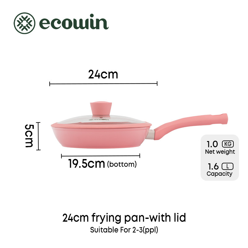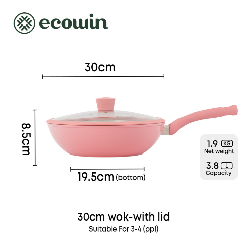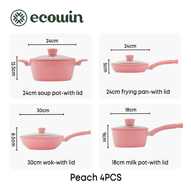 Ecowin Cookware Peach Series Nonstick Pan Set - Wok + Saucepan + Frying Pan + Soup Pot PFOA Free