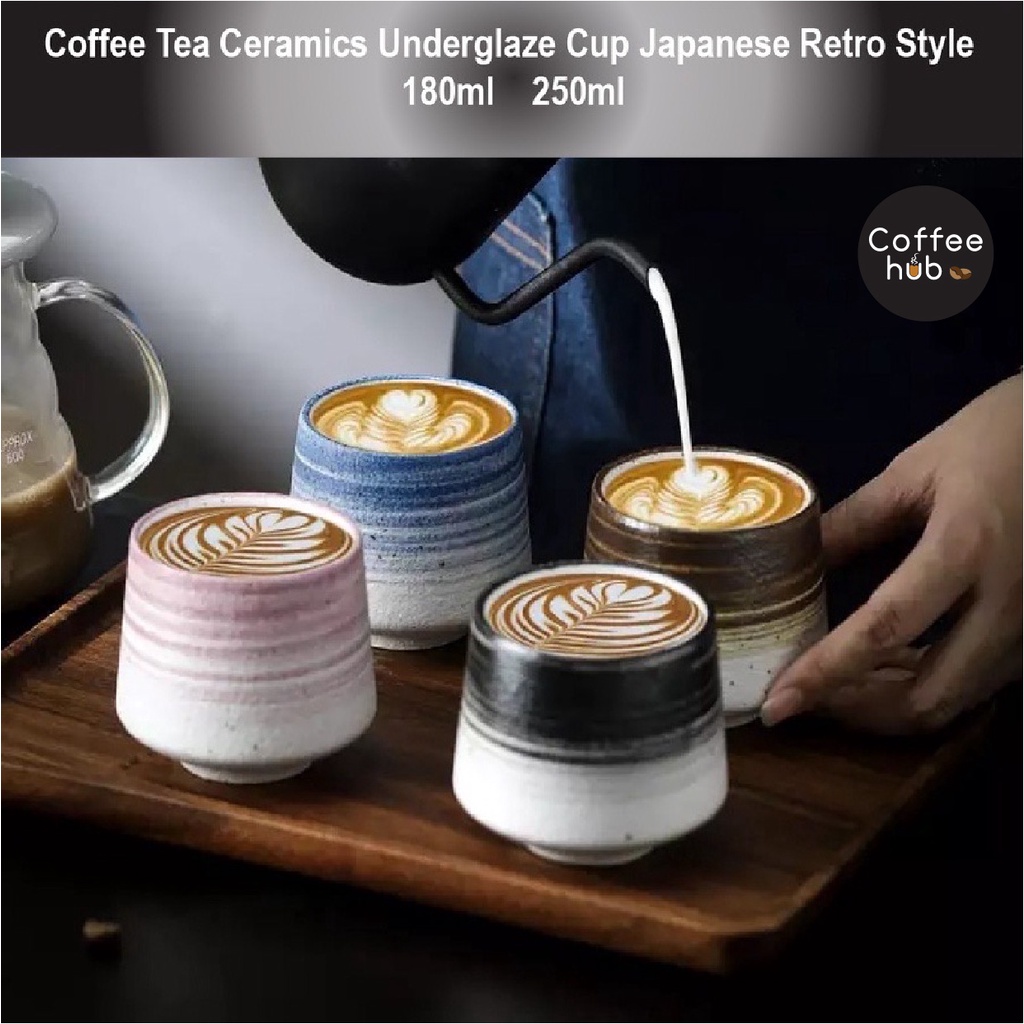 (Ready Stock)Espresso Coffee Tea Ceramic Underglaze Cup Mug Pottery Japanese Retro Style 180ml - 250ml
