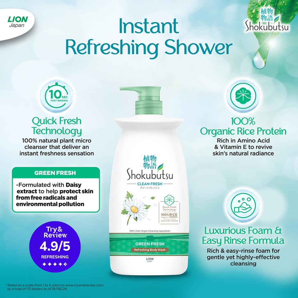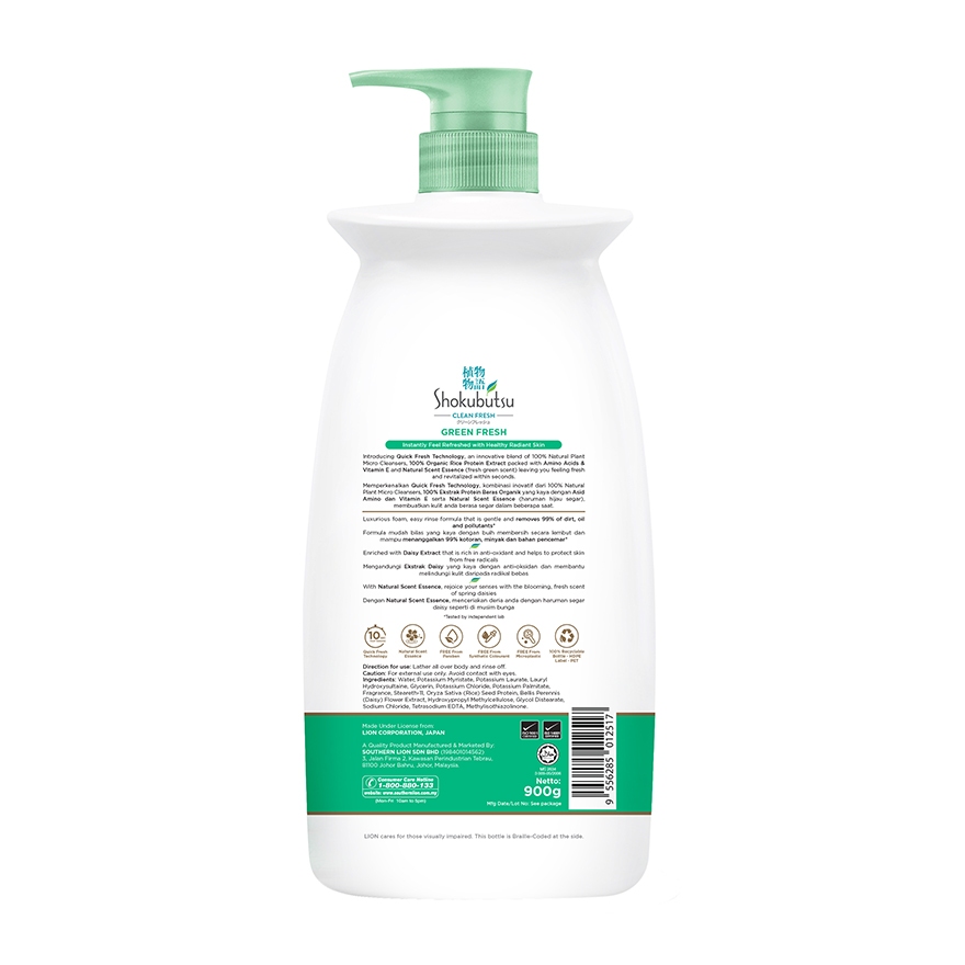 Shokubutsu Clean Fresh Green Fresh Refreshing Body Wash Bottle 900g