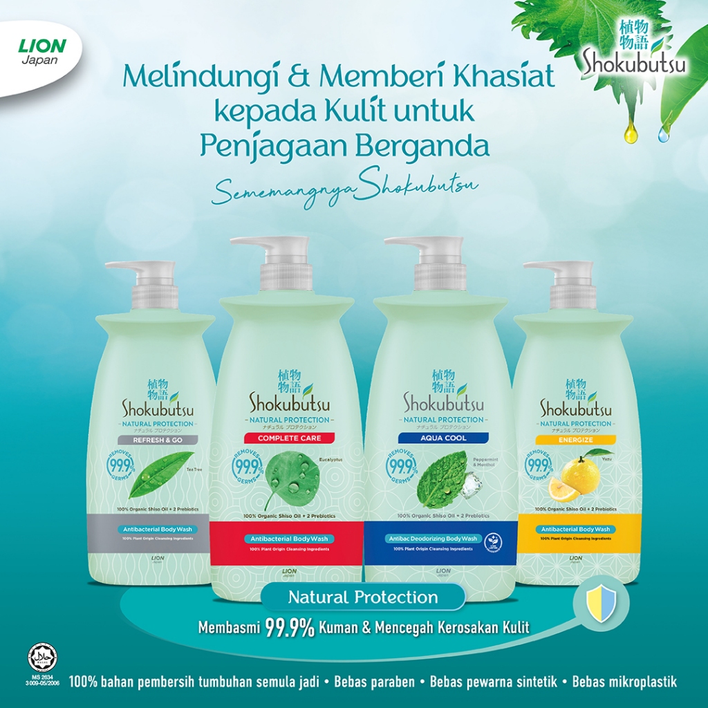 Shokubutsu Natural Protection Body Wash Refresh & Go With Tea Tree Bottle 900g