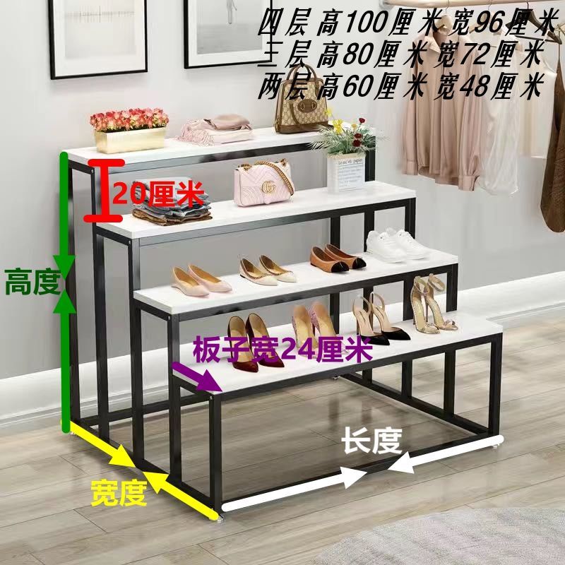 Shopping Mall High School Low Three-Layer Storage Rack Shoe Store Bag Stepped Appearance Display Stand Zhongdao Wrought Iron Display