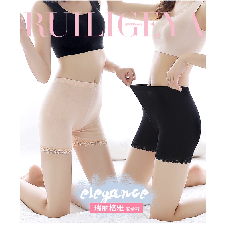 Short Shorts Ladies Anti-glare Safety Pants Ice Silk Lace Large Size Black White Skin Color Safety Pants