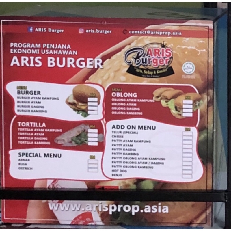 Showcase Rak Menu Burger Aluminium Free Sticker