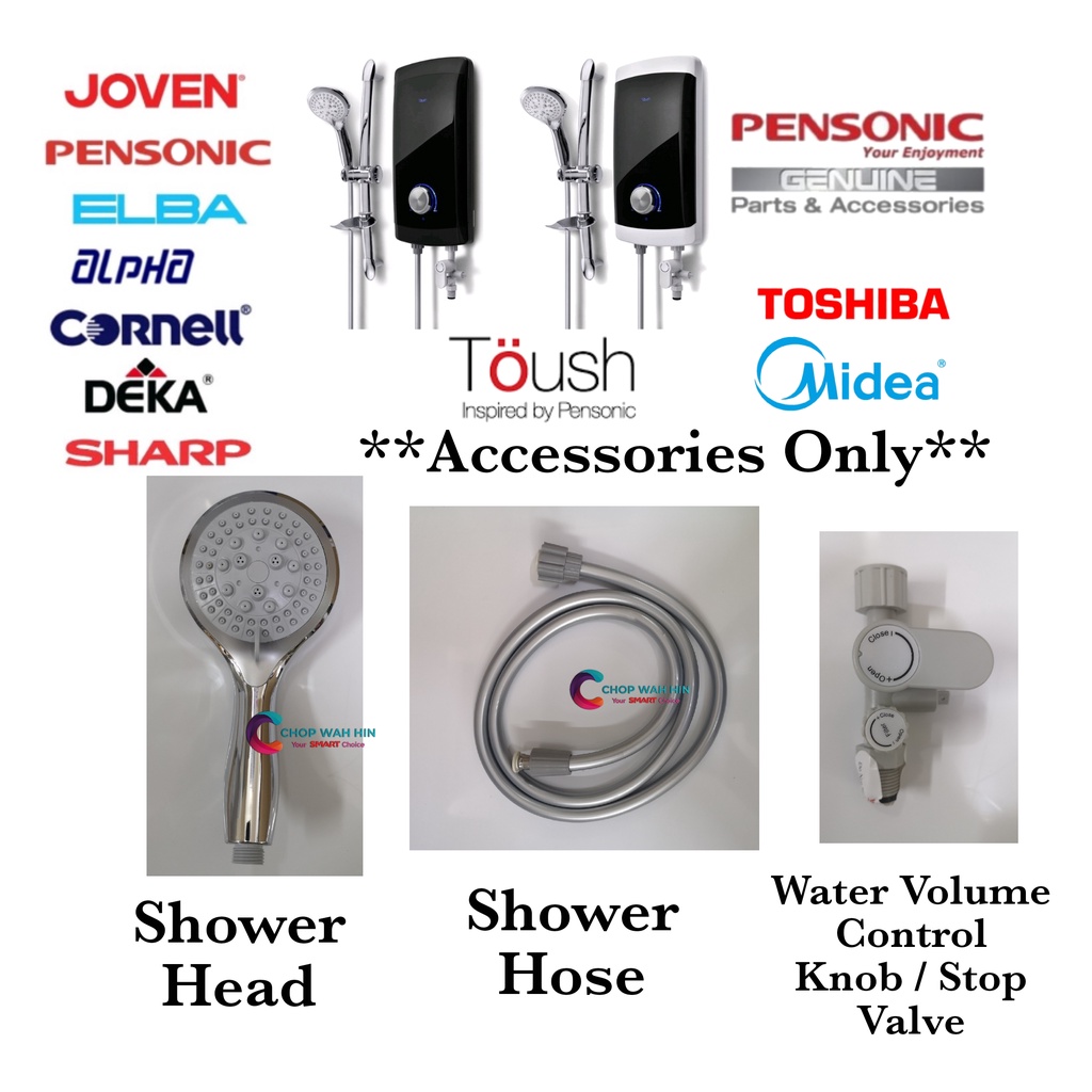 Shower Head /Hose /Stop Valve For Water Heater Pensonic /Joven /Alpha /Deka /Sharp /Khind /Elba /Cornell /Midea /Toshiba