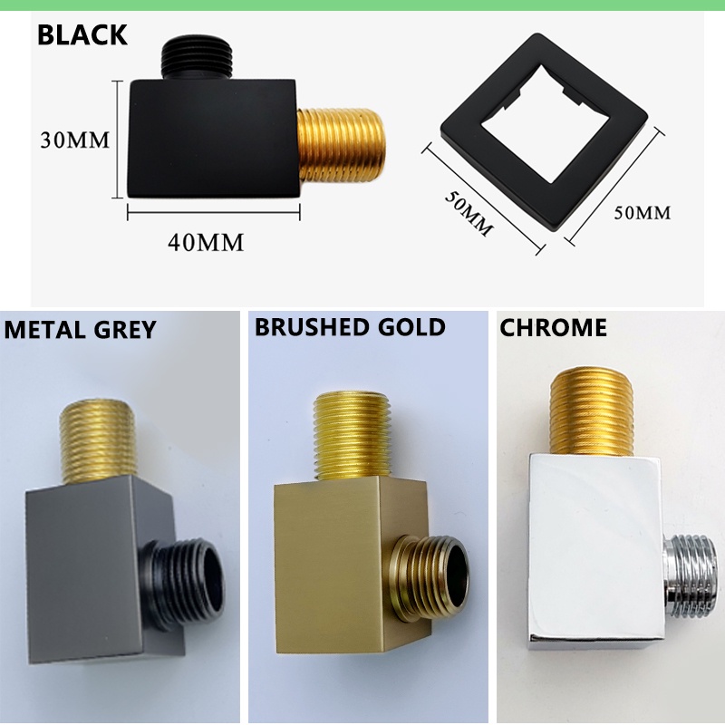 Shower Water Outlet Hose Connector Solid Brass Black Chrome Gold Grey Round Square Bathroom In Wall Thread Connector