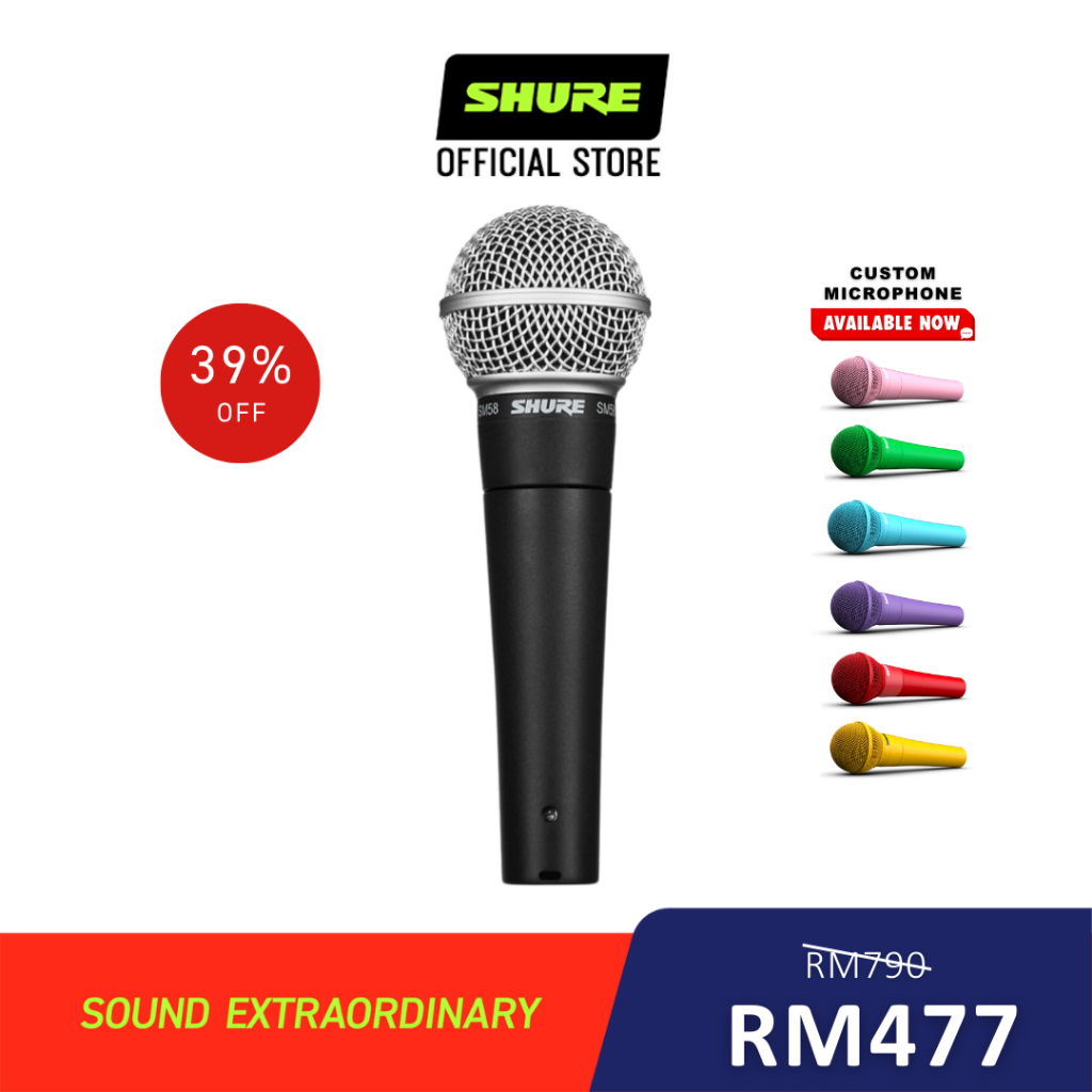 Shure SM58 Handheld Dynamic Vocal Microphone With Stand Adapter SM58LC