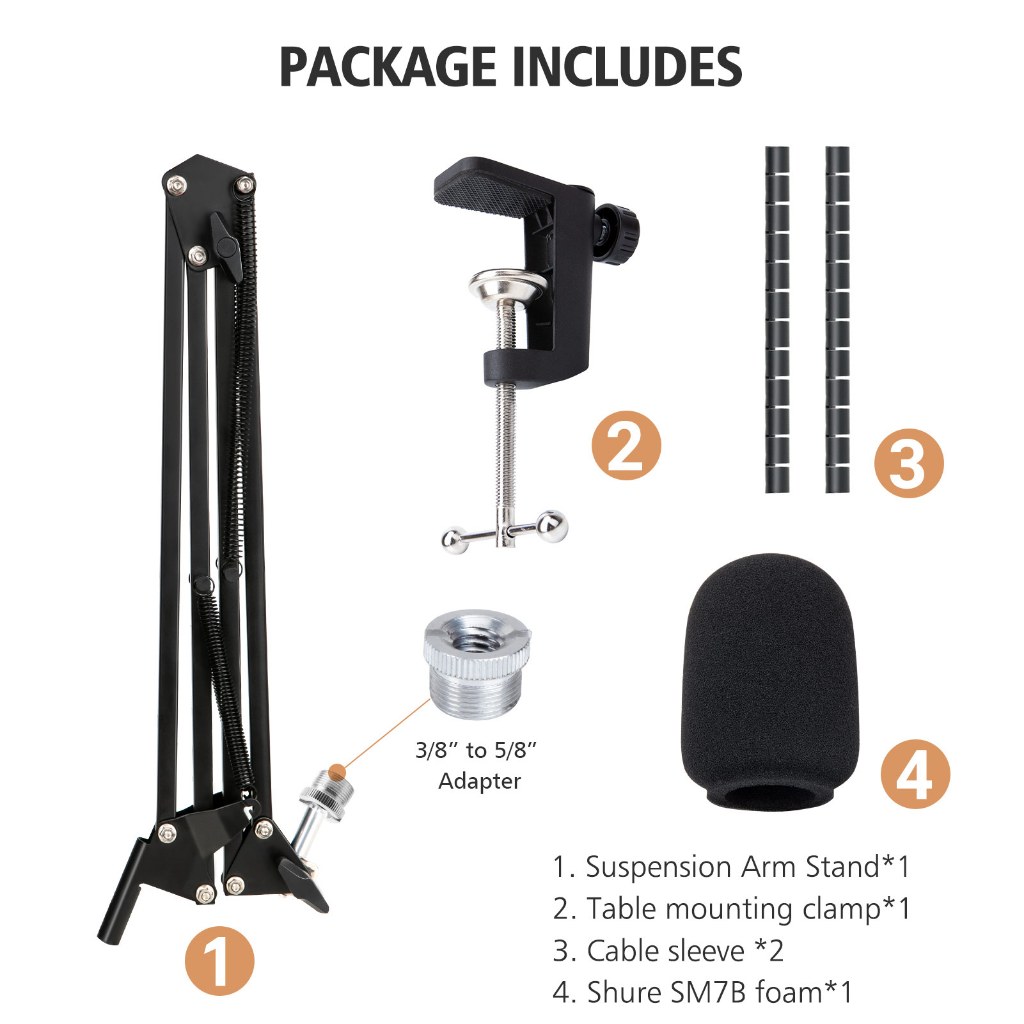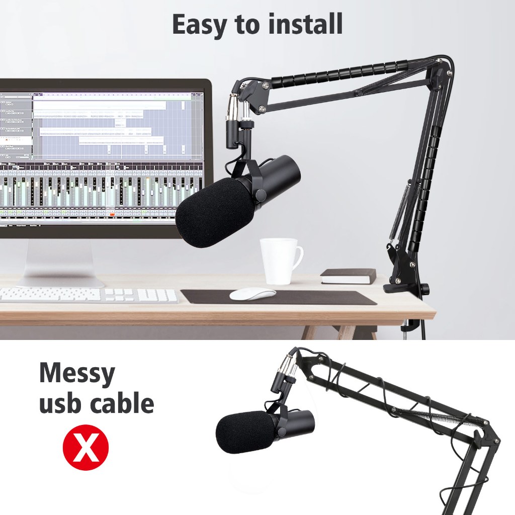 Shure SM7B Boom Arm with Mic Cover Compatible with Shure SM7B, Ajustable Mic Stand Desk Mic Arm with Cable Sleeve, SM7B Pop Filter Reduce Background Noise