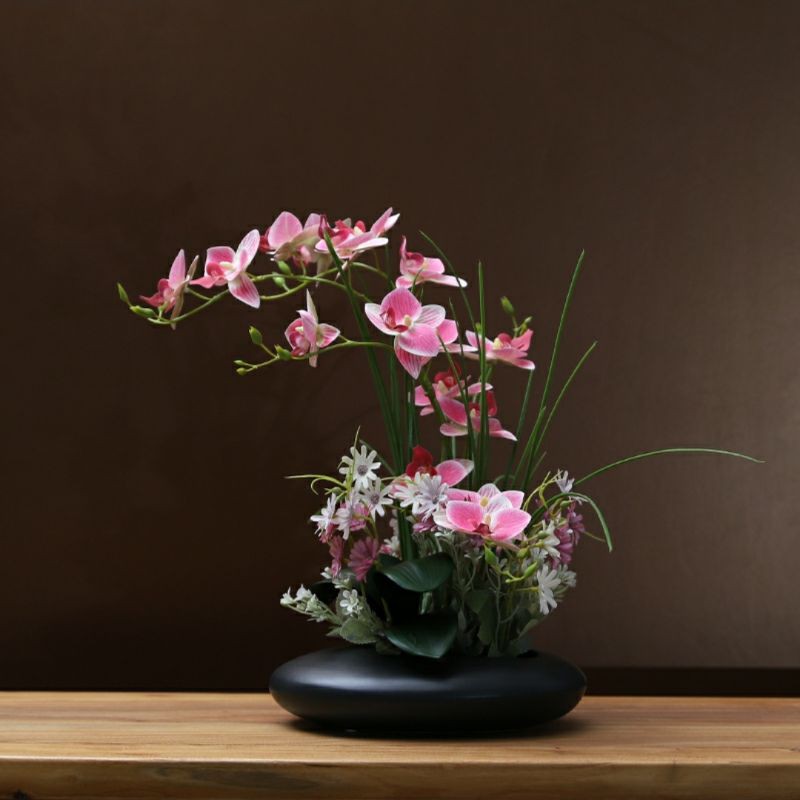 Siap Gubah Set Orkid Mewah dan Pasu Bunga Palsu Rumah Hiasan Artificial Flower and Flower Pot Home decoration