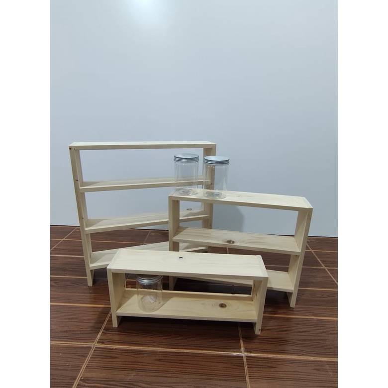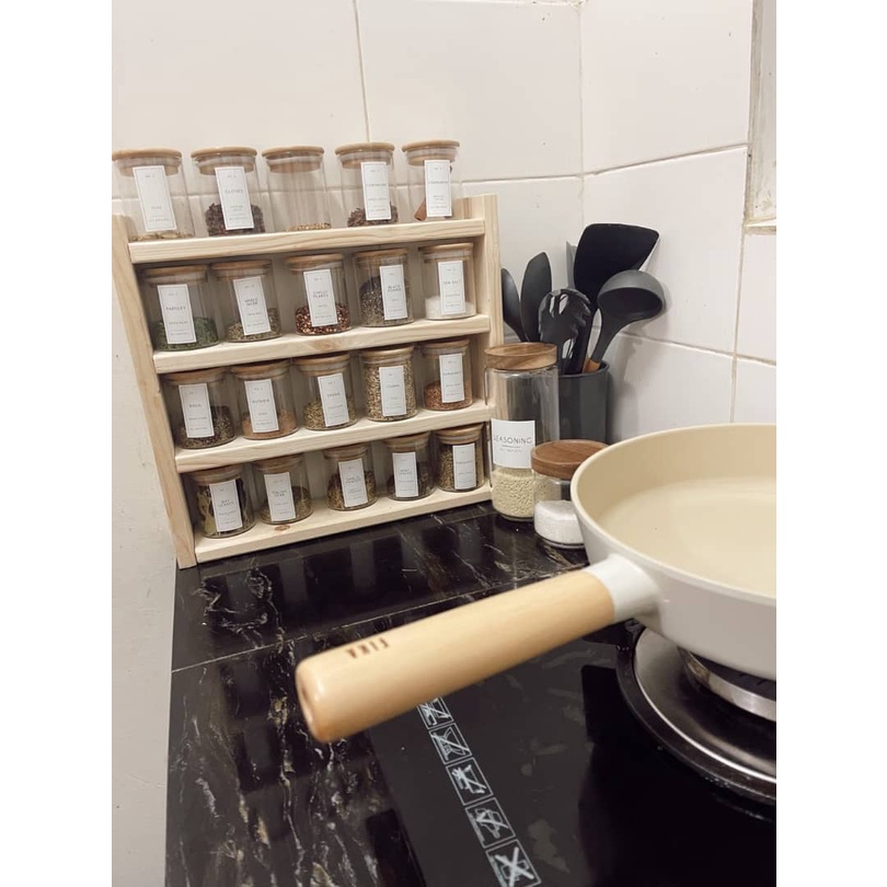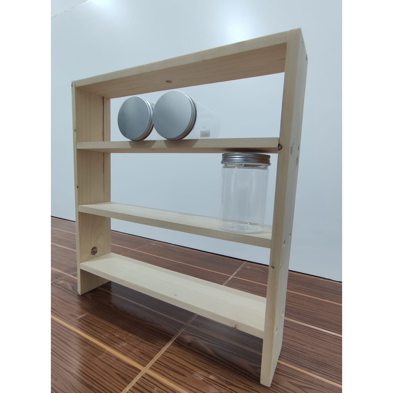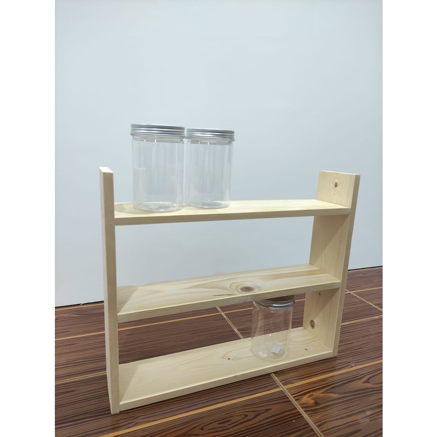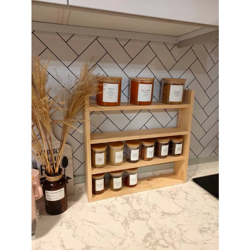 Siap pasang-Wooden rack shelves kitchen Rustic pinewood / rak botol rempah rak rempah ratus rak balang rempah