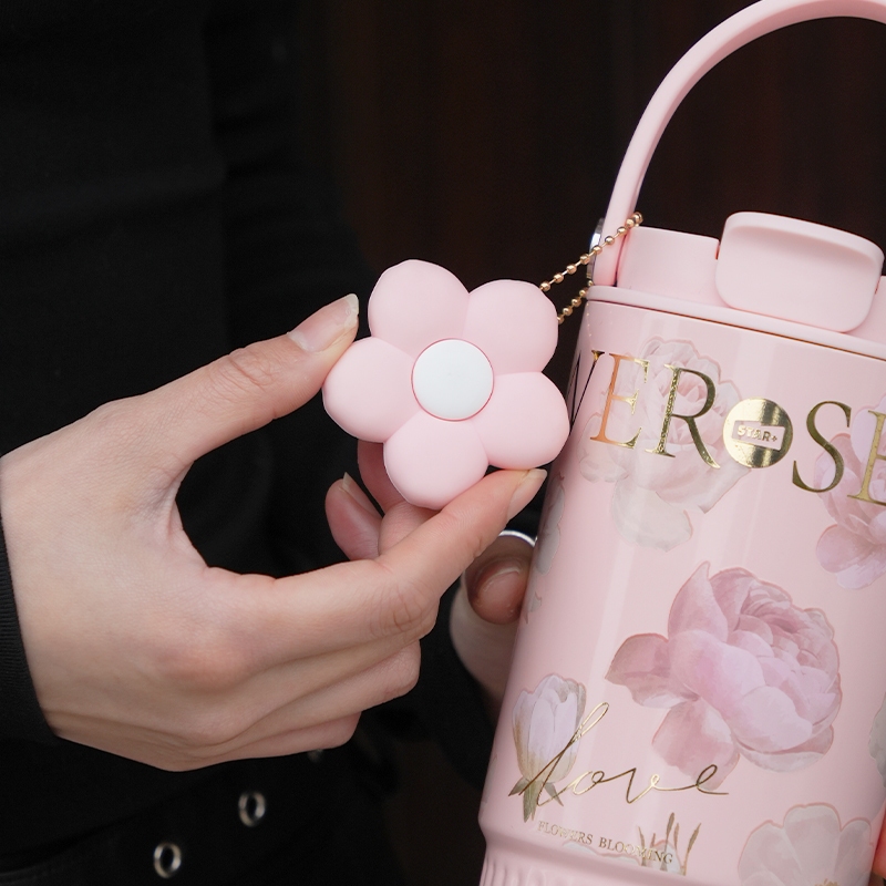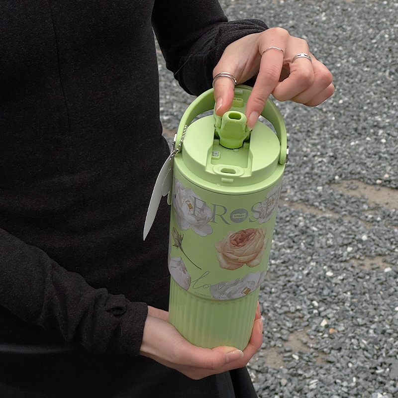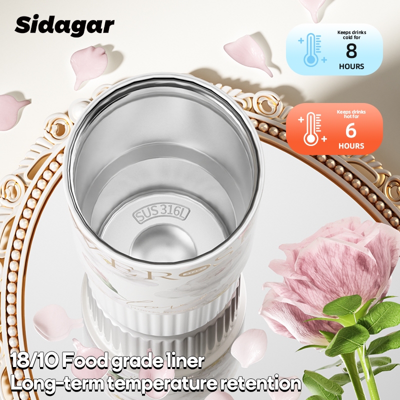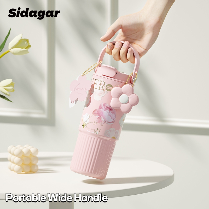 Sidagar Floral Stainless Steel Thermos Bottle With Handle & Straw (316L/750ml)-Premium 3D Embossed & Gold Hot Stamping, Double-Wall Vacuum Insulated