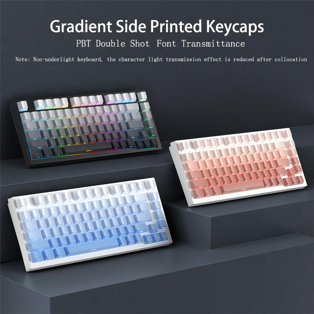 Side Print Shine Through Keycap Set 133 Keys Cherry Profile Double Shot PBT Keycaps for Gateron MX Switch Mechanical Gaming Keyboard