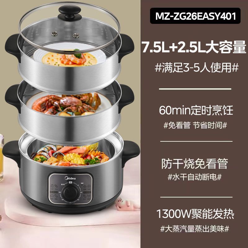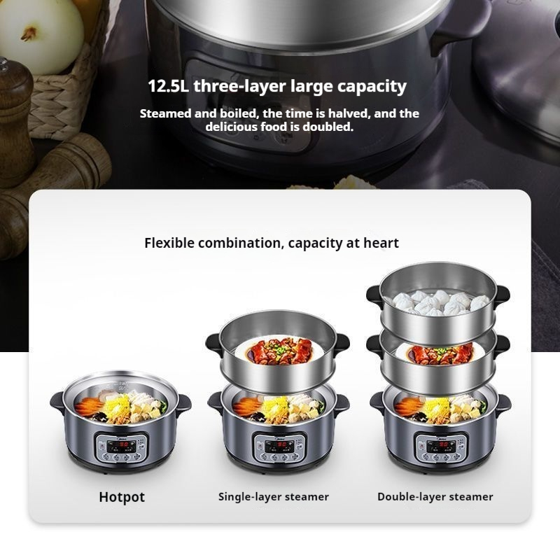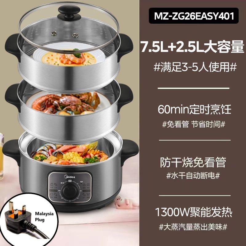 Midea 3 Layer Electric Cooker Electric Steamer 10L Multi-function Stainless Steel Cooking Pot