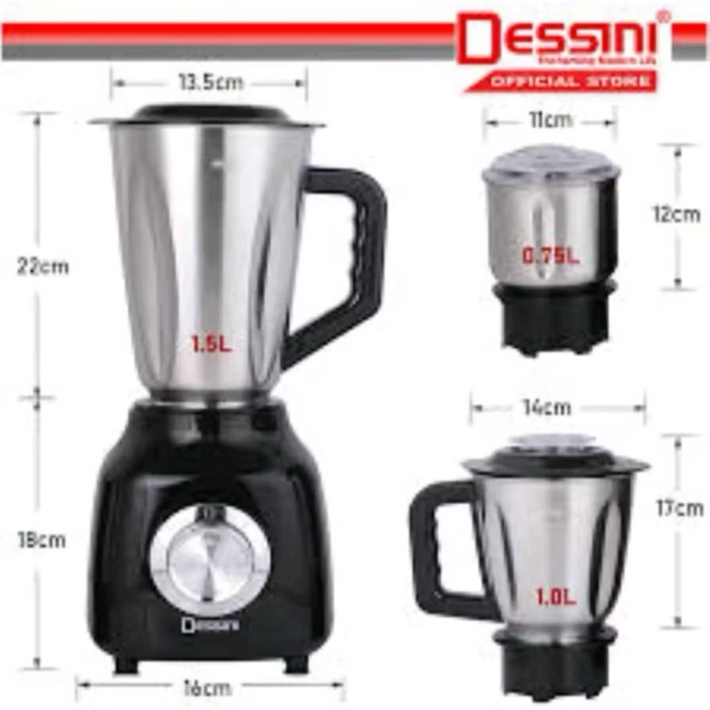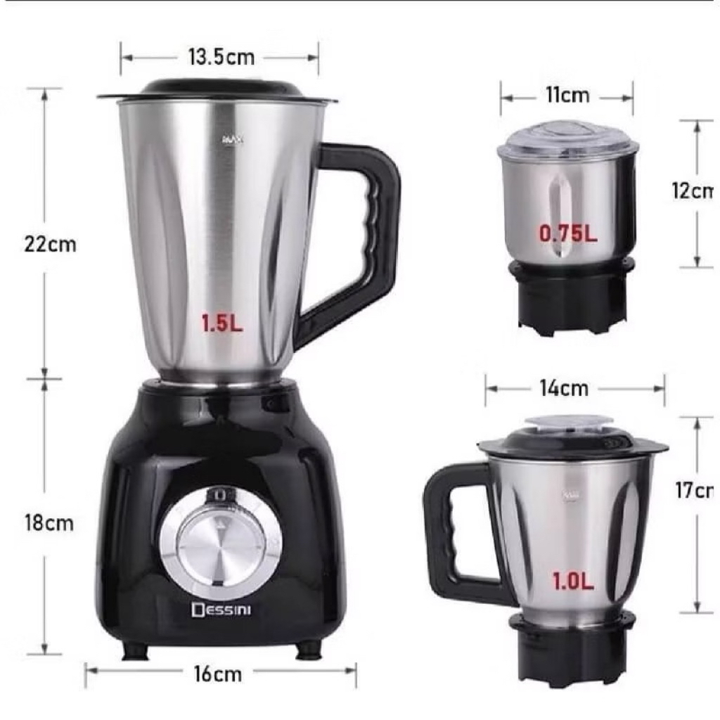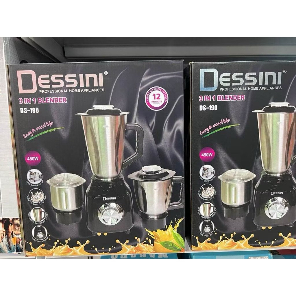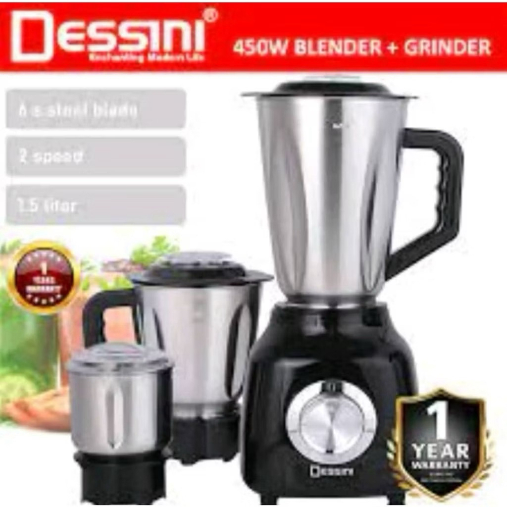 % Original, DESSINI DS-190 3 IN 1 Blender + Grinder 450W Mixer with 3D 6 stainless steel cutting blades