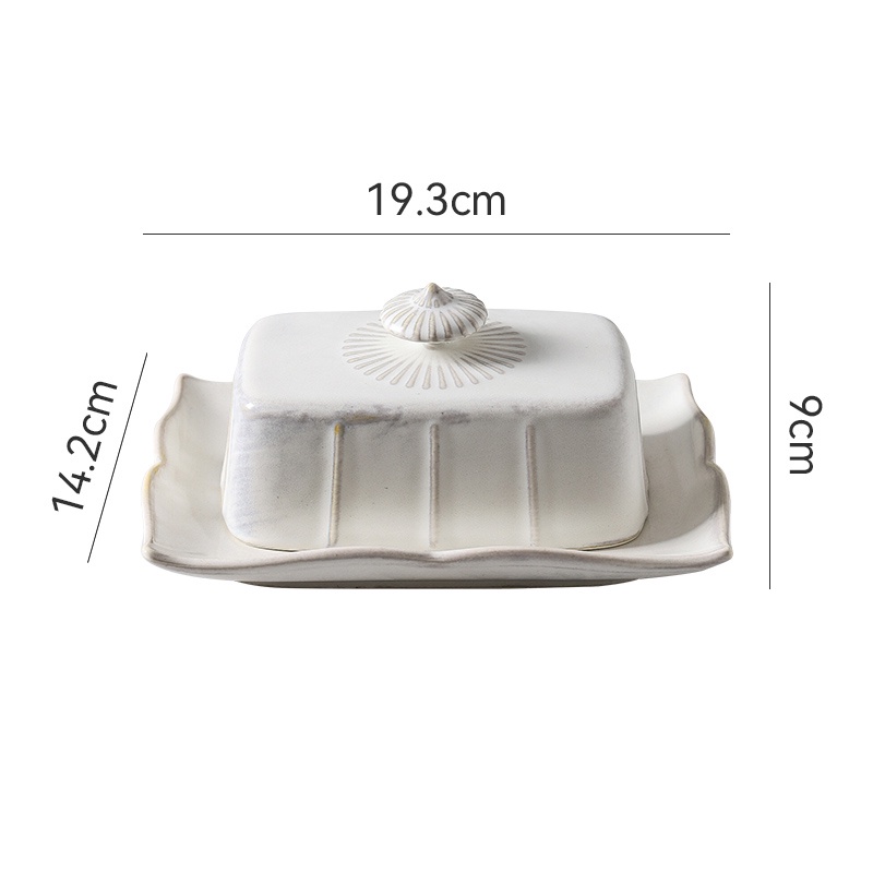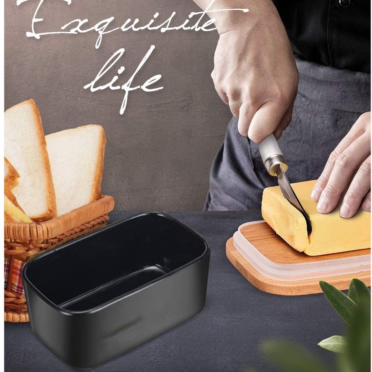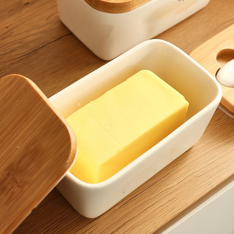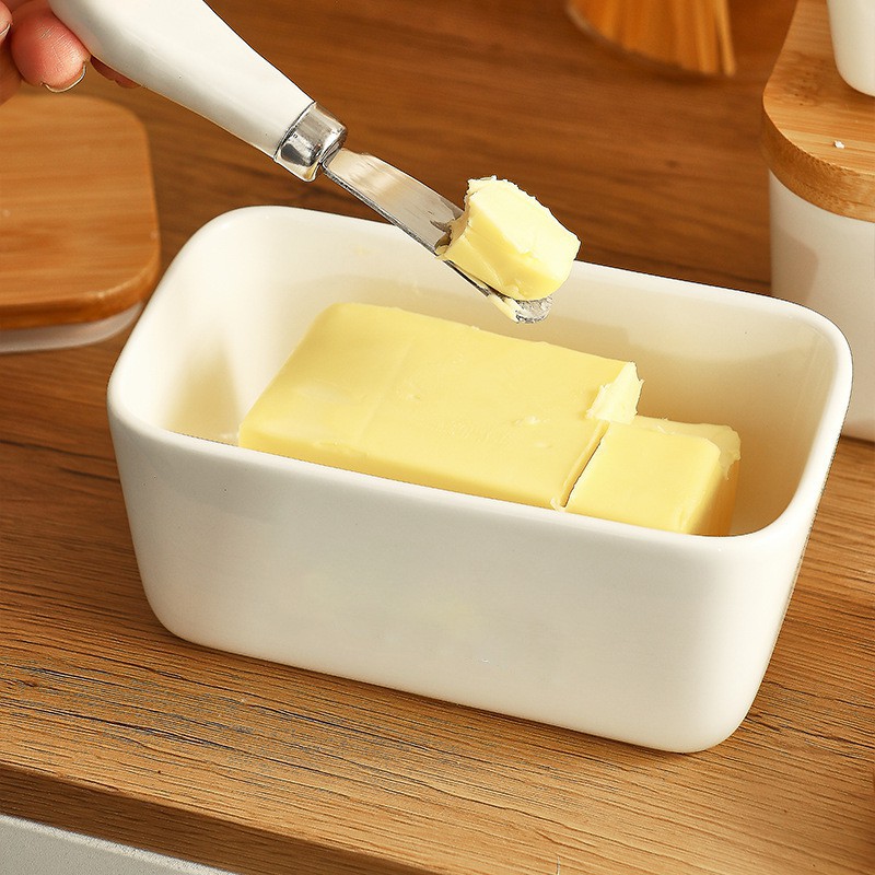 Locaupin Butter Dish with Lid Large Ceramic Butter Storage Container Keeper for Refrigerator with Butter Knife