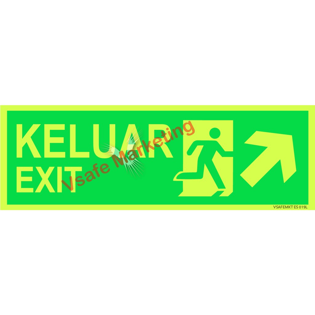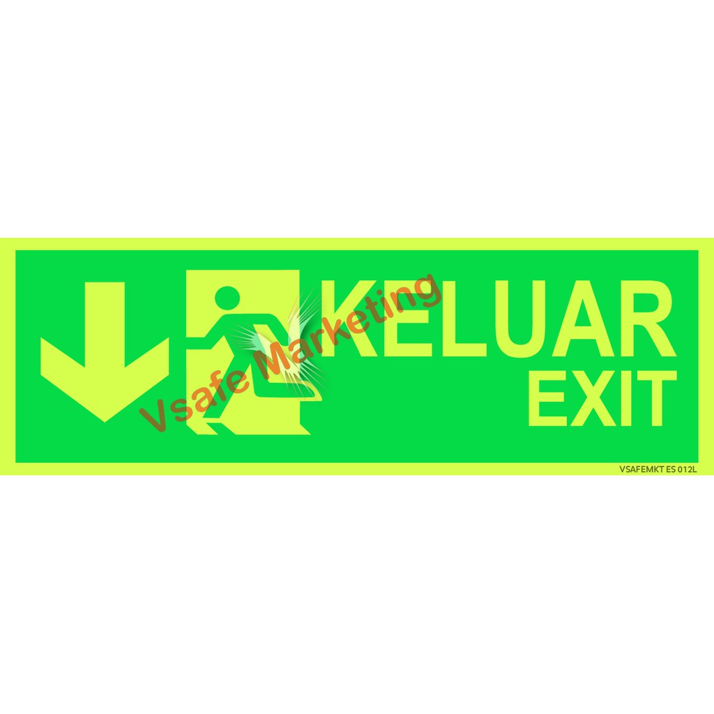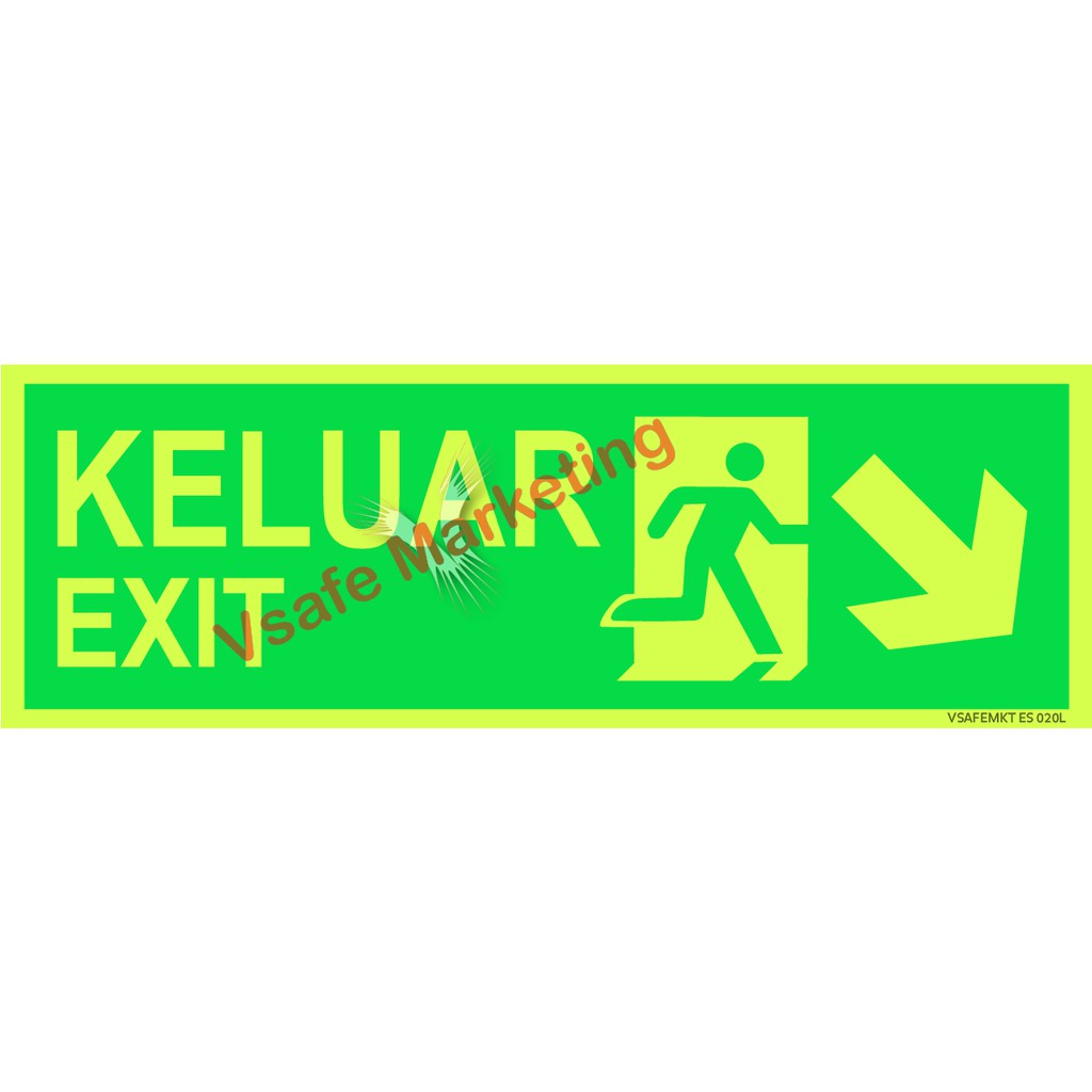 Signage VSAFEMKT Photo-luminescence Exit Keluar Escape Glow in the dark Signs (BOMBA KELUAR SIGNANGE) ES001L