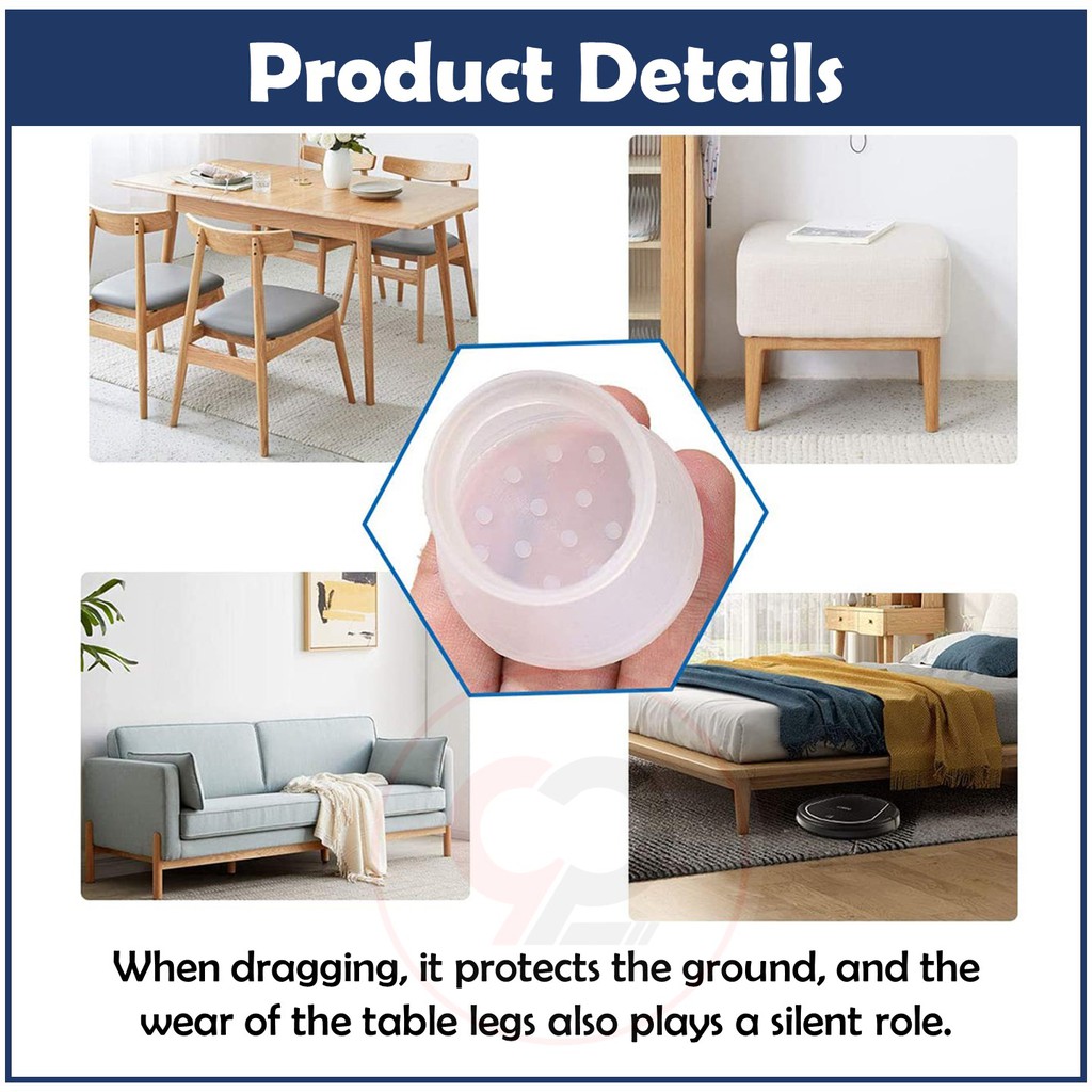Silicon Chair Leg Cover Round Protective Anti-Slip Silent Chair Pads Leg Cap Table Foot Protector Cover Kaki Kerusi