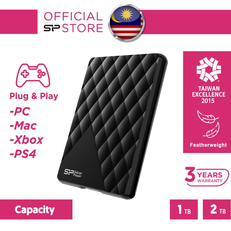 Silicon Power D06 External Hard Disk Drive USB3.2 Featherweight (1TB/2TB)