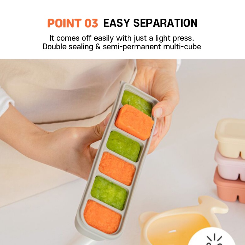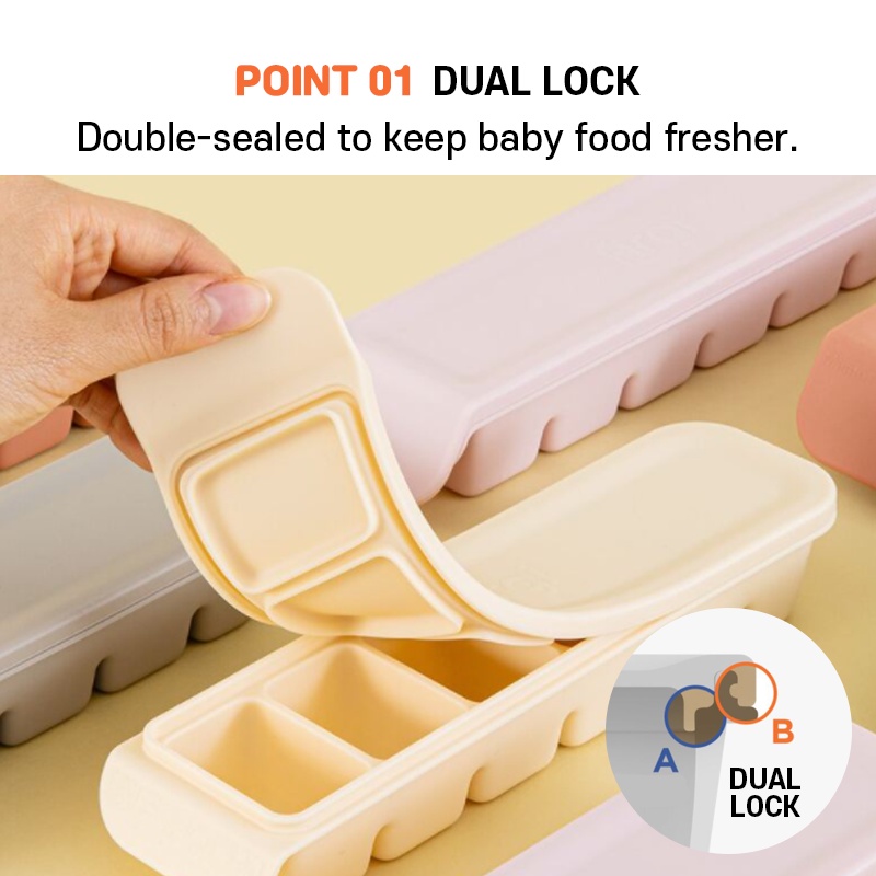 Silicone Baby Food Cube Storage Container (Made in Korea) DUAL LOCK Baby Food Containers 6 cube / 4 cube