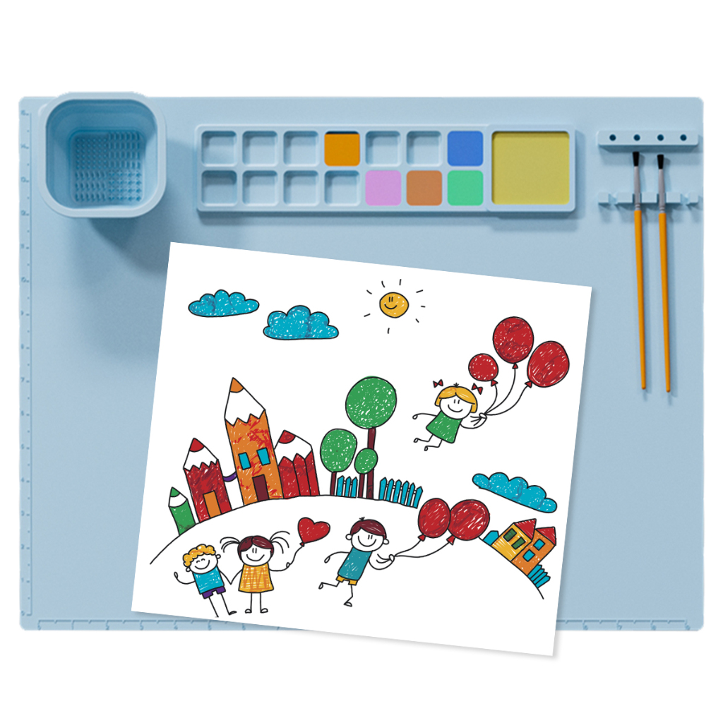 Silicone Craft Mat Silicone Painting Sheet with Palette Cup Tool Holder Multifunctional Large Silicone Sheet