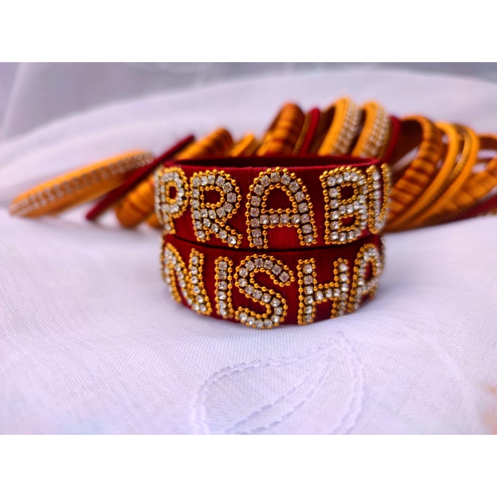 Silk Thread Wedding Bangle/Groom bride name bangle/Named bangle/Bridal bangle/silver bangle