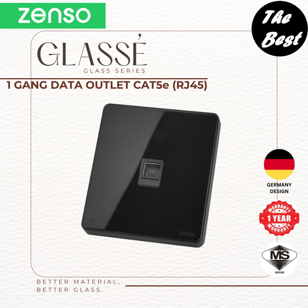 Simon | Zenso Glasse Black Glass Switch Socket 13A Flat Uni 1 Gang 20A Doorbell Double USB Slim Modern Glass Switch