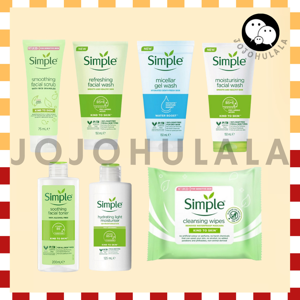 Simple Face Wash, Toner, Scrub & Moisturiser Booster Serum– Daily Skincare Cleansing and Hydration