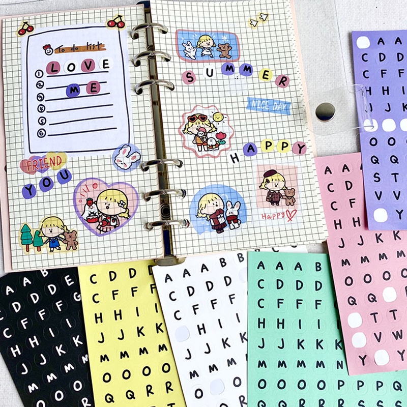 Simple Colorful Alphabet Number Stickers Solid Color Decorative DIY Stickers