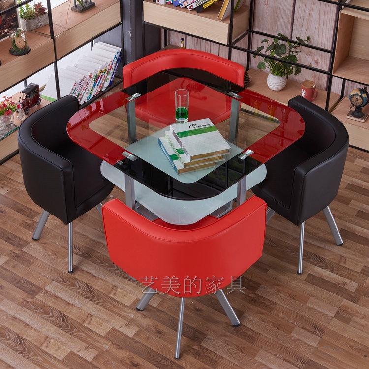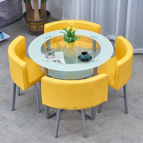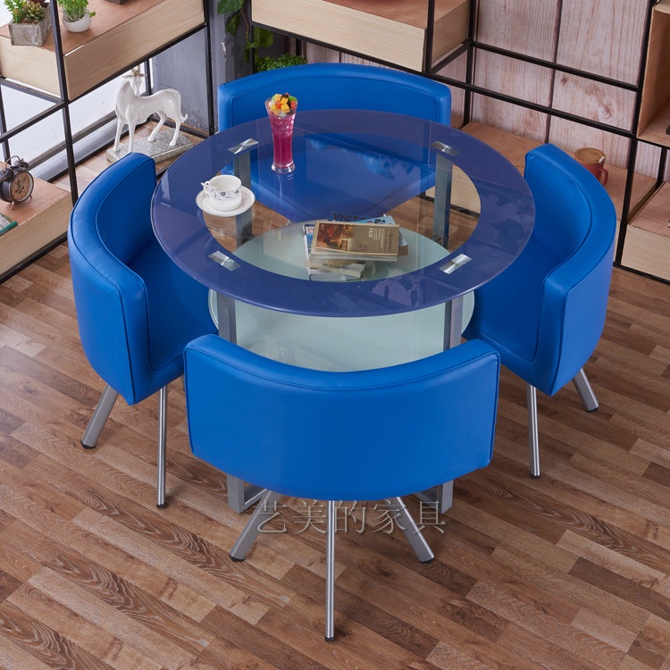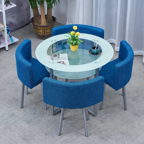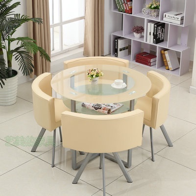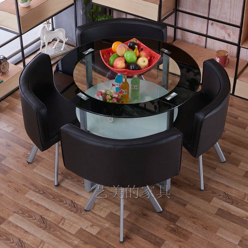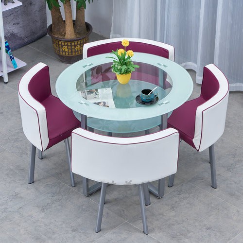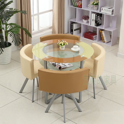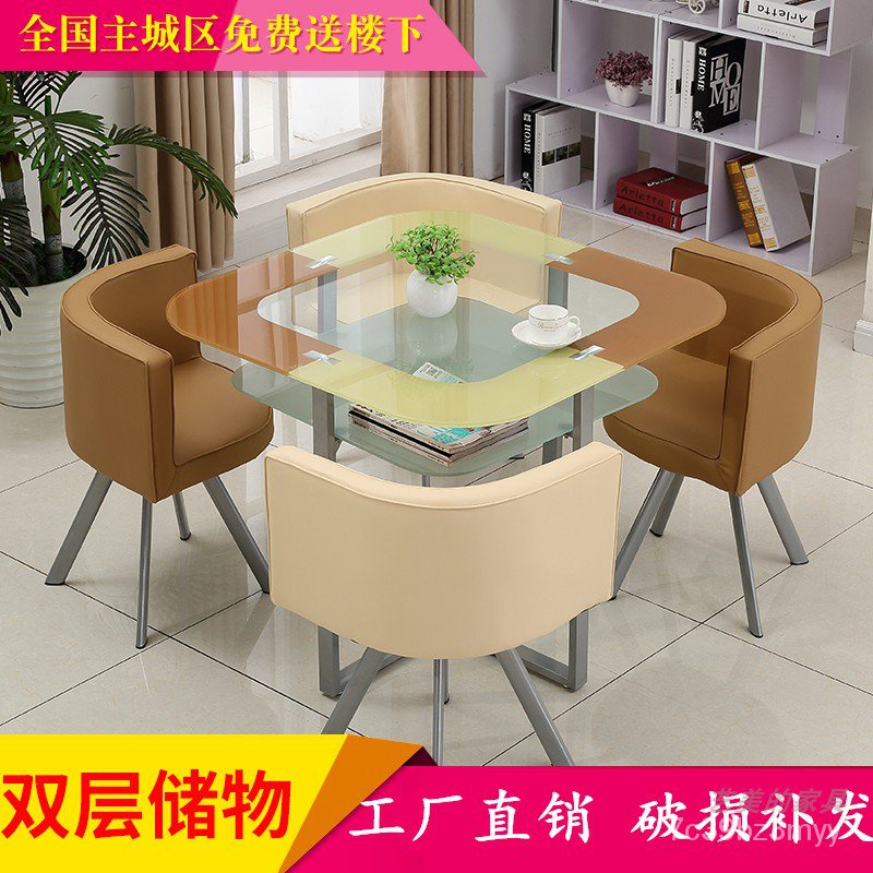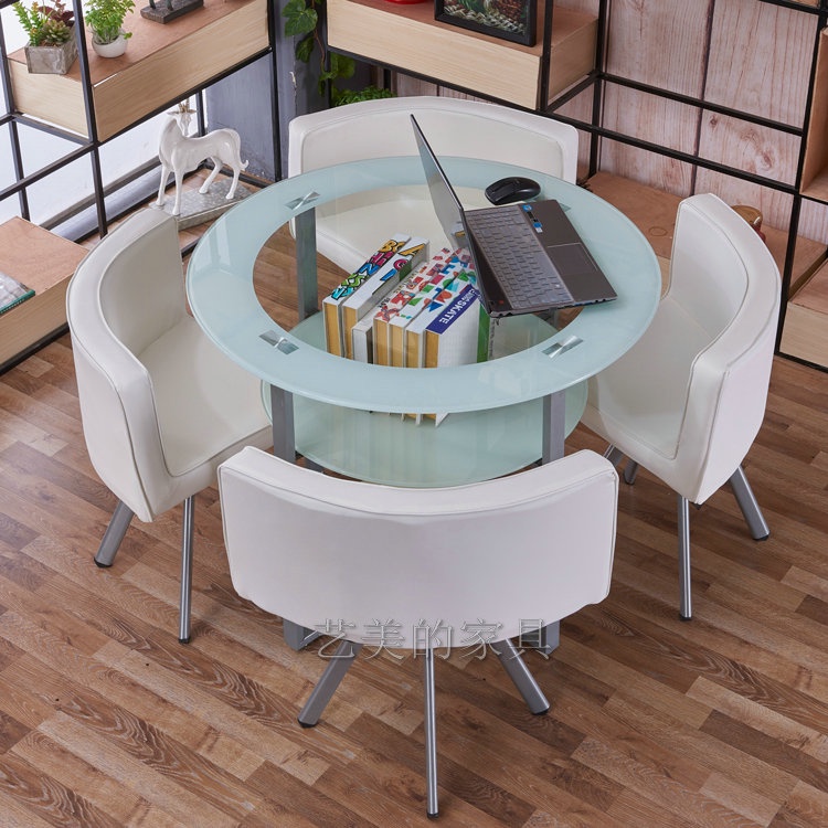 Simple Office Double Layer Conference Table One Table Four Chairs Tempered Glass Reception round Table Occasional Table