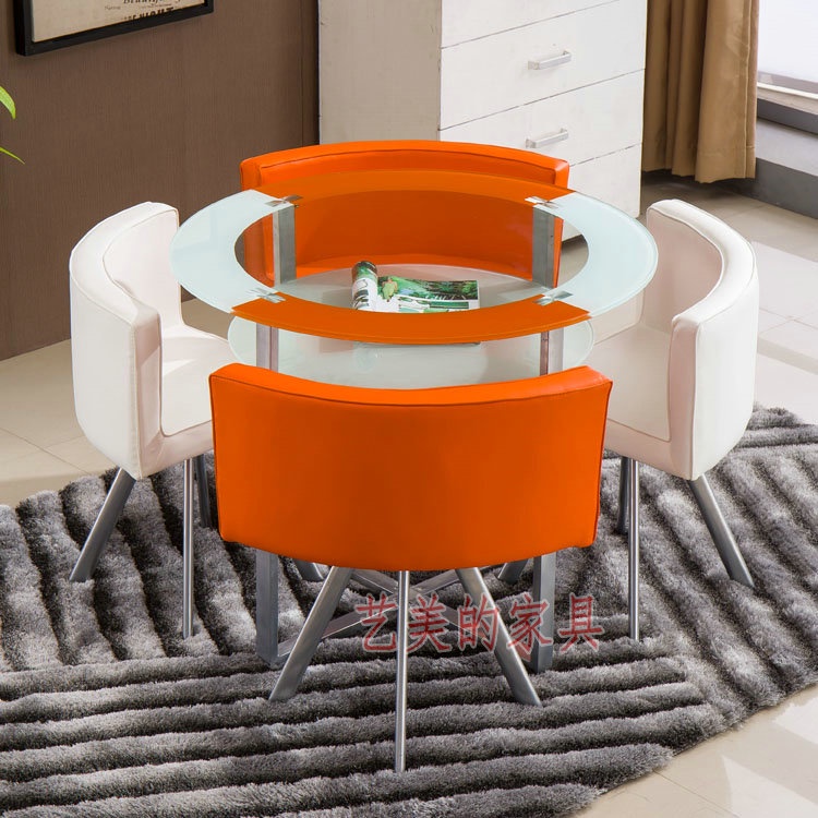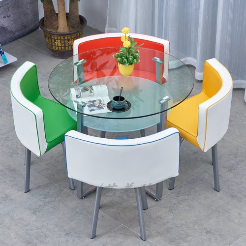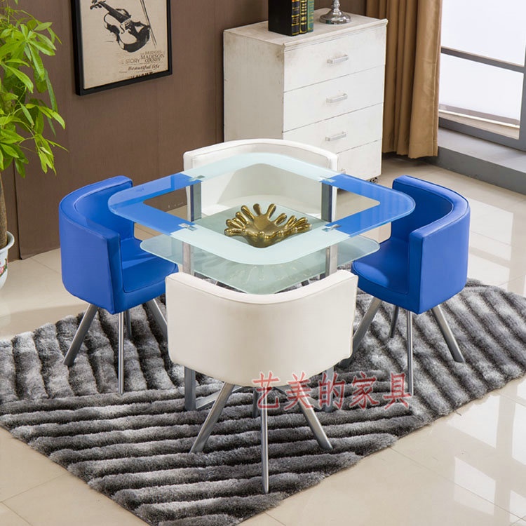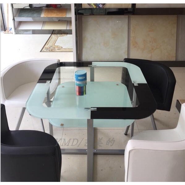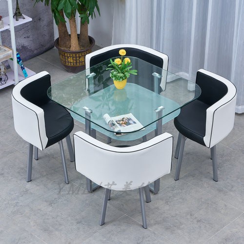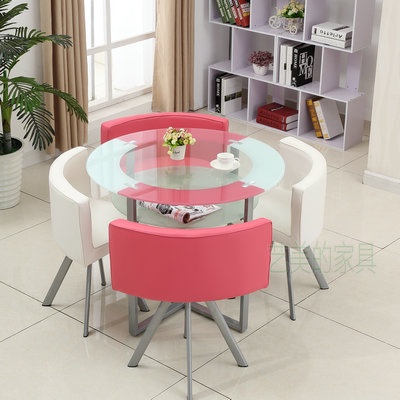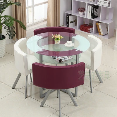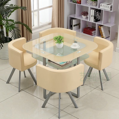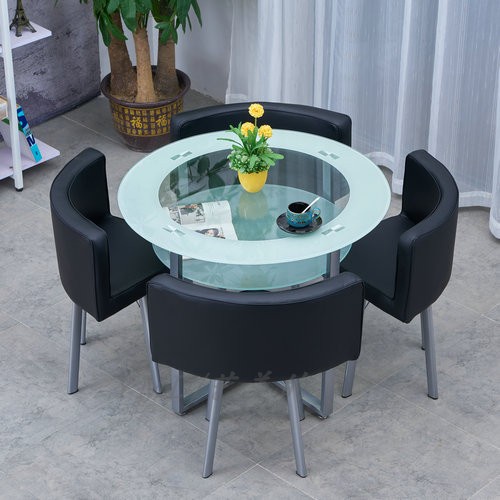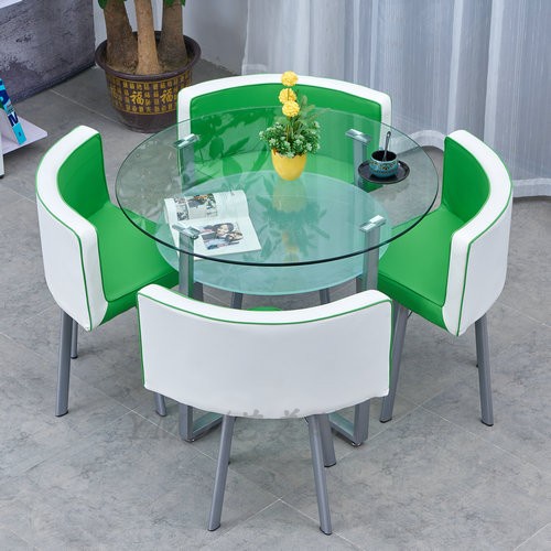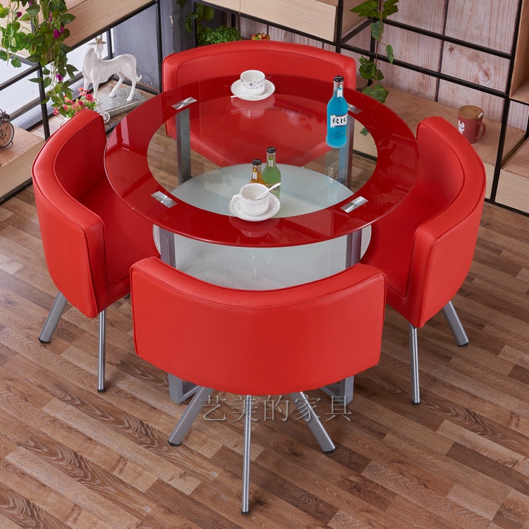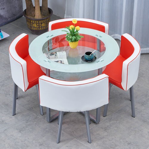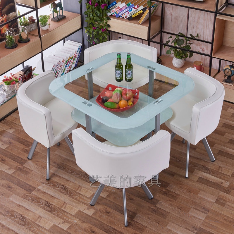Simple Office Double Layer Conference Table One Table Four Chairs Tempered Glass Reception round Table Occasional Table