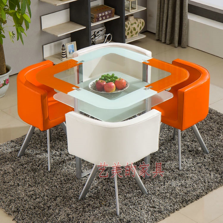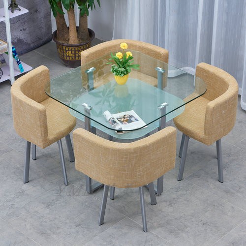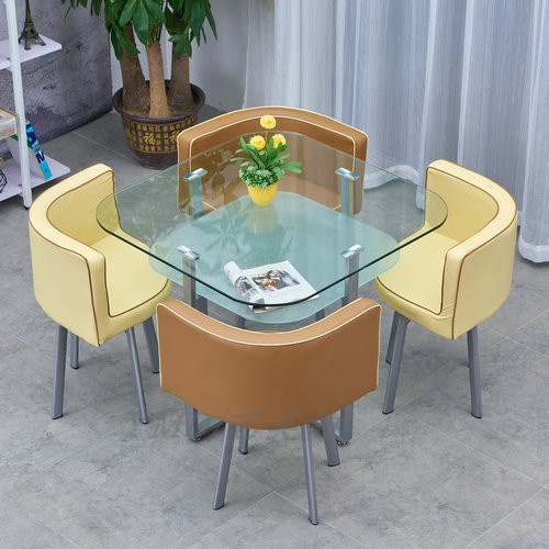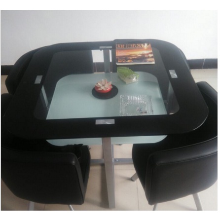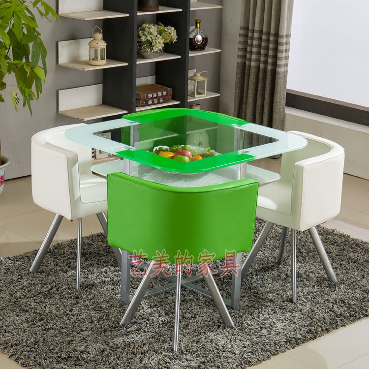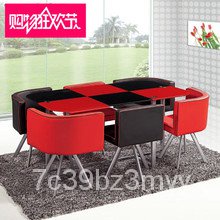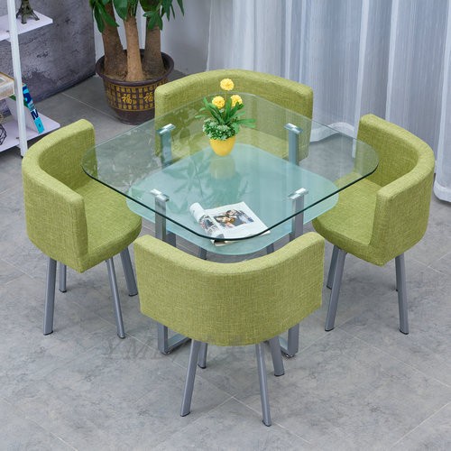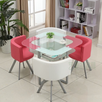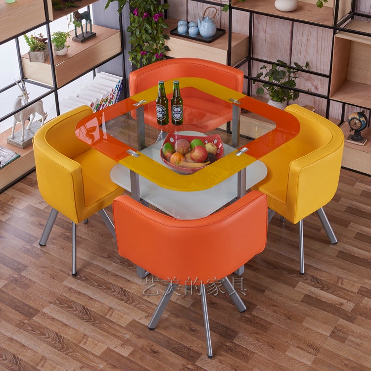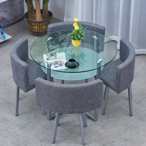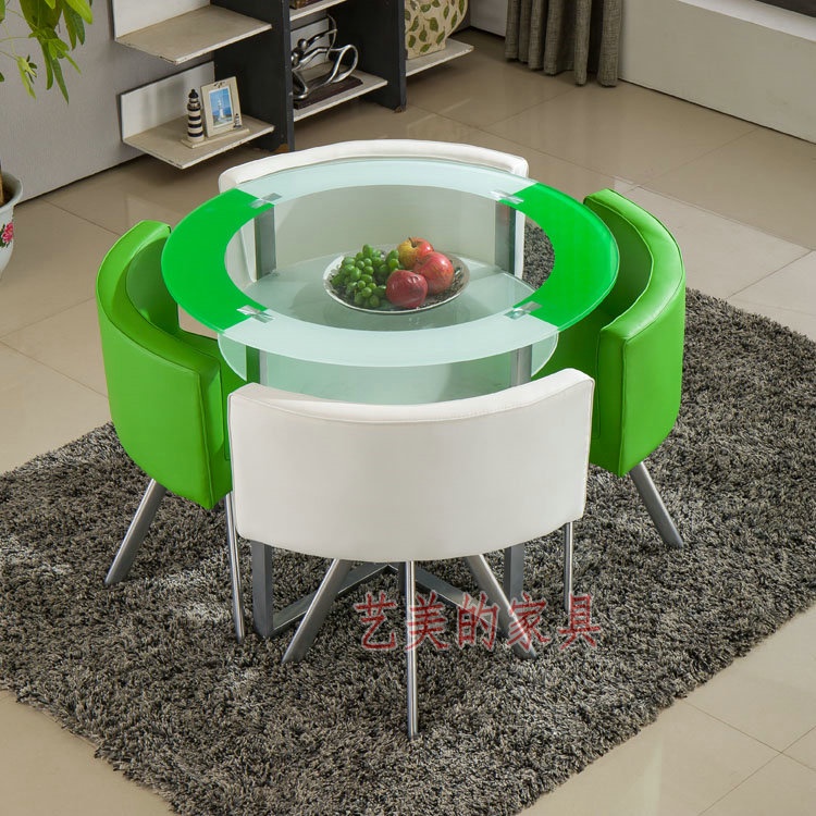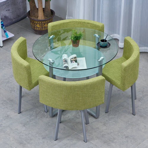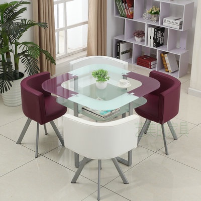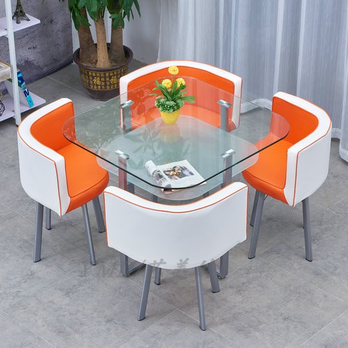 Simple Office Double Layer Conference Table One Table Four Chairs Tempered Glass Reception round Table Occasional Table