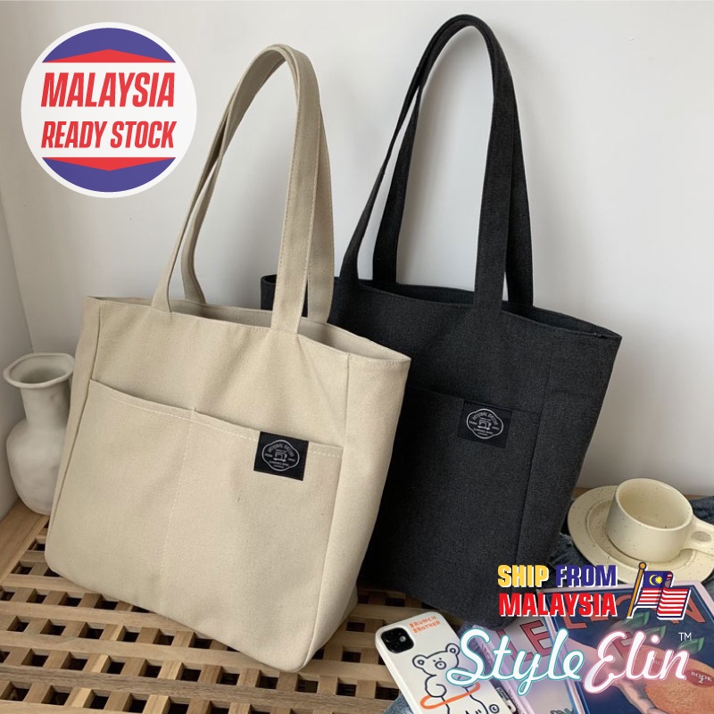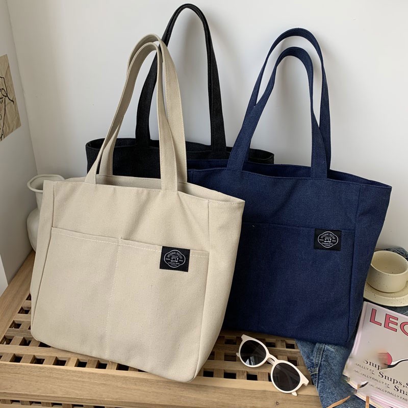 Simple School Office Casual Canvas Shoulder Bag Tote Bag Large Capacity Student Bag Women Bag Lapto Tote Beg Work Bag