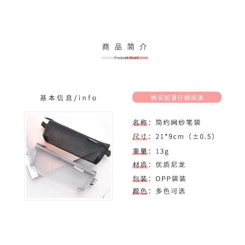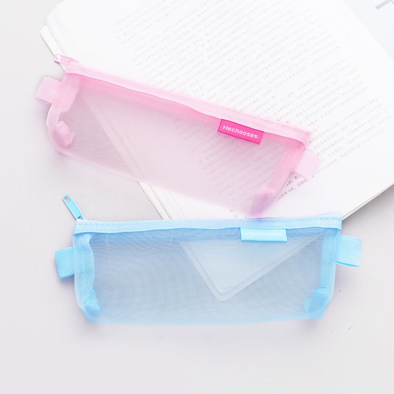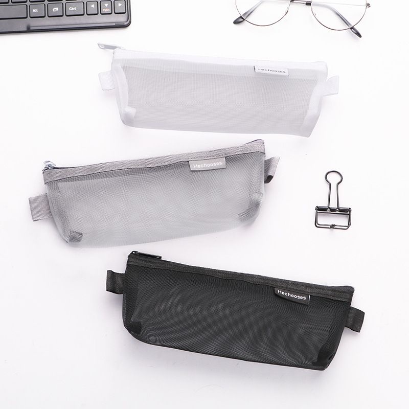 Simple Transparent Mesh Pencil Case for Office Student