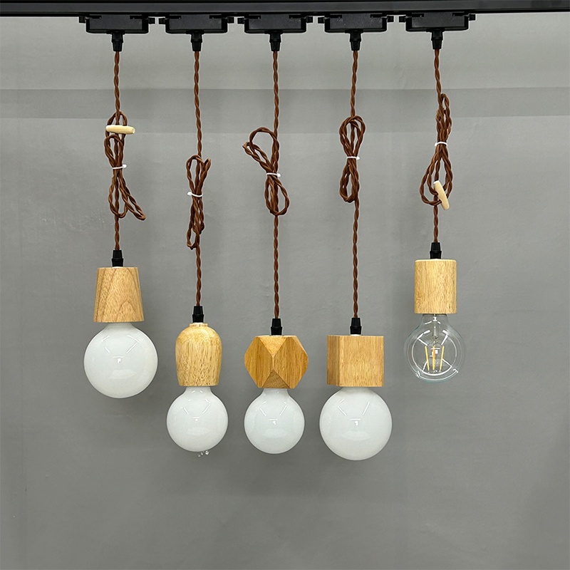 Simple track light chandelier e27 log lamp holder Edison bulb changeable track lamp joint diy rail lamp