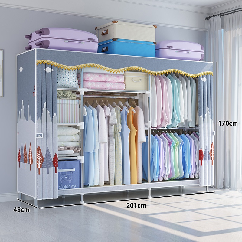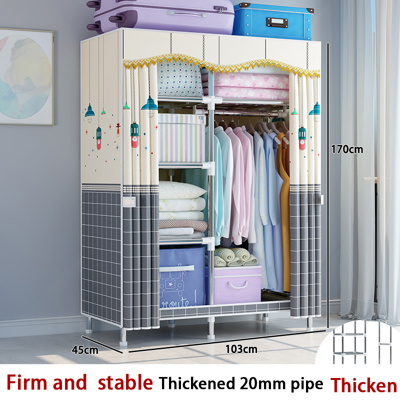 Simple wardrobe 20mm sturdy frame curtain cloth capsule component small cabinet modern multi-function wardrobe LEEGO