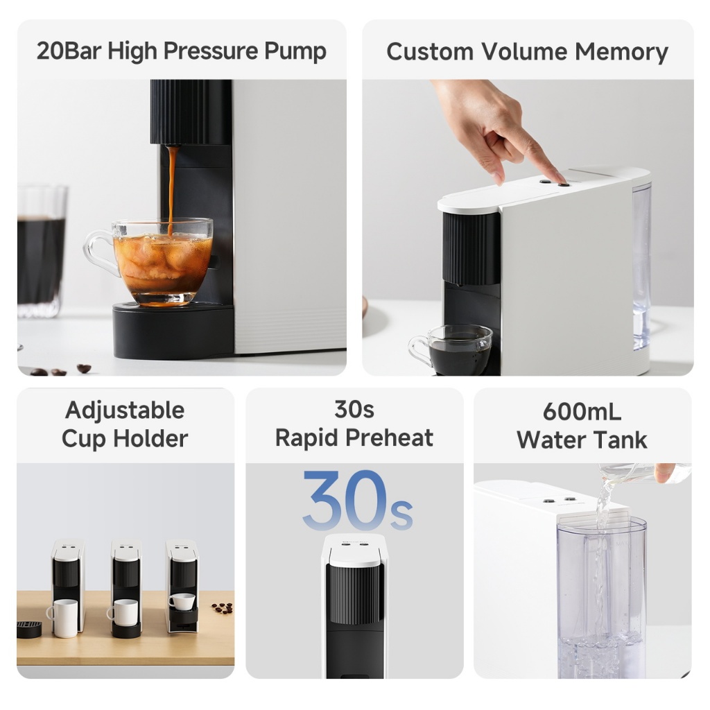 Simplus Coffee Maker | 20Bar High Pressure | 30s Rapid Preheat | 600ml Water Tank | Italian Espresso Coffee | Brewing-QuickBrew KFJH019
