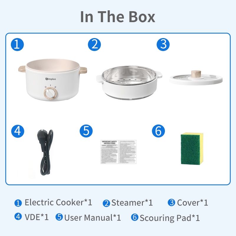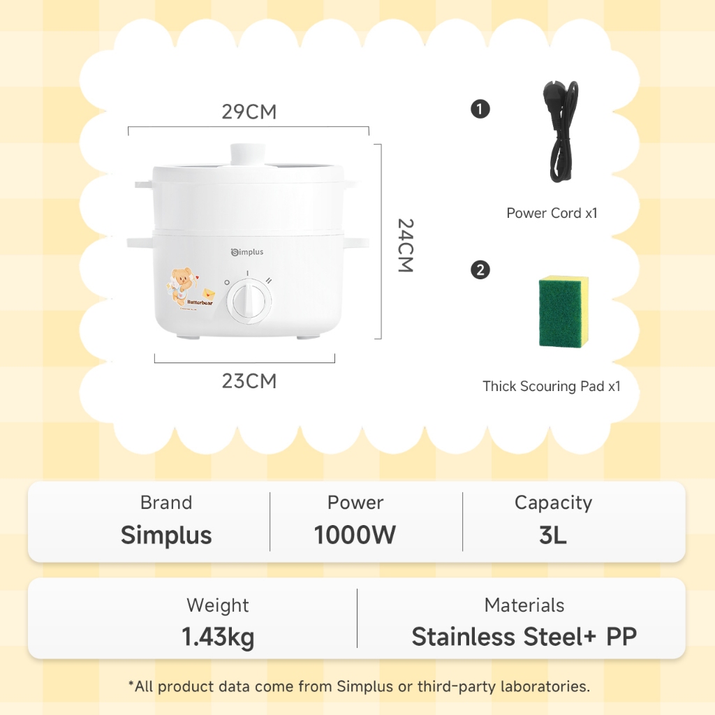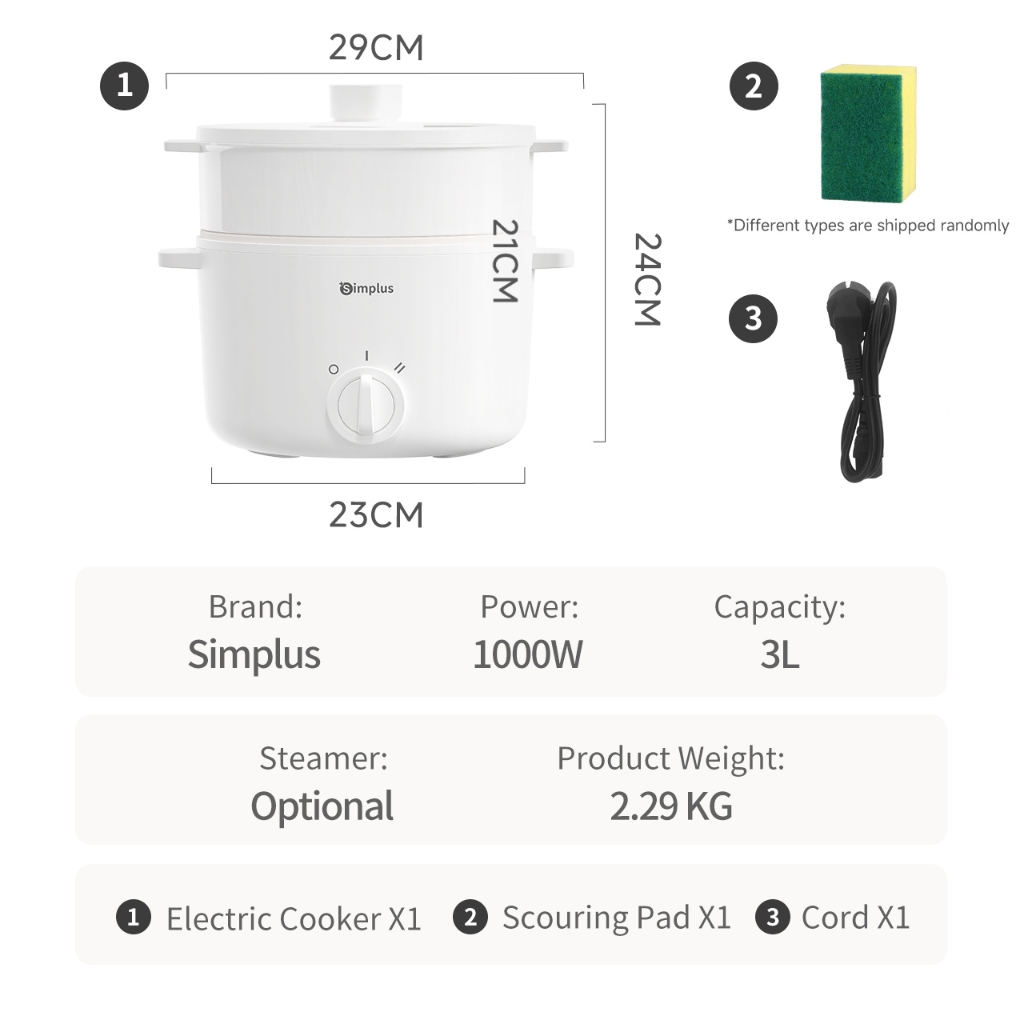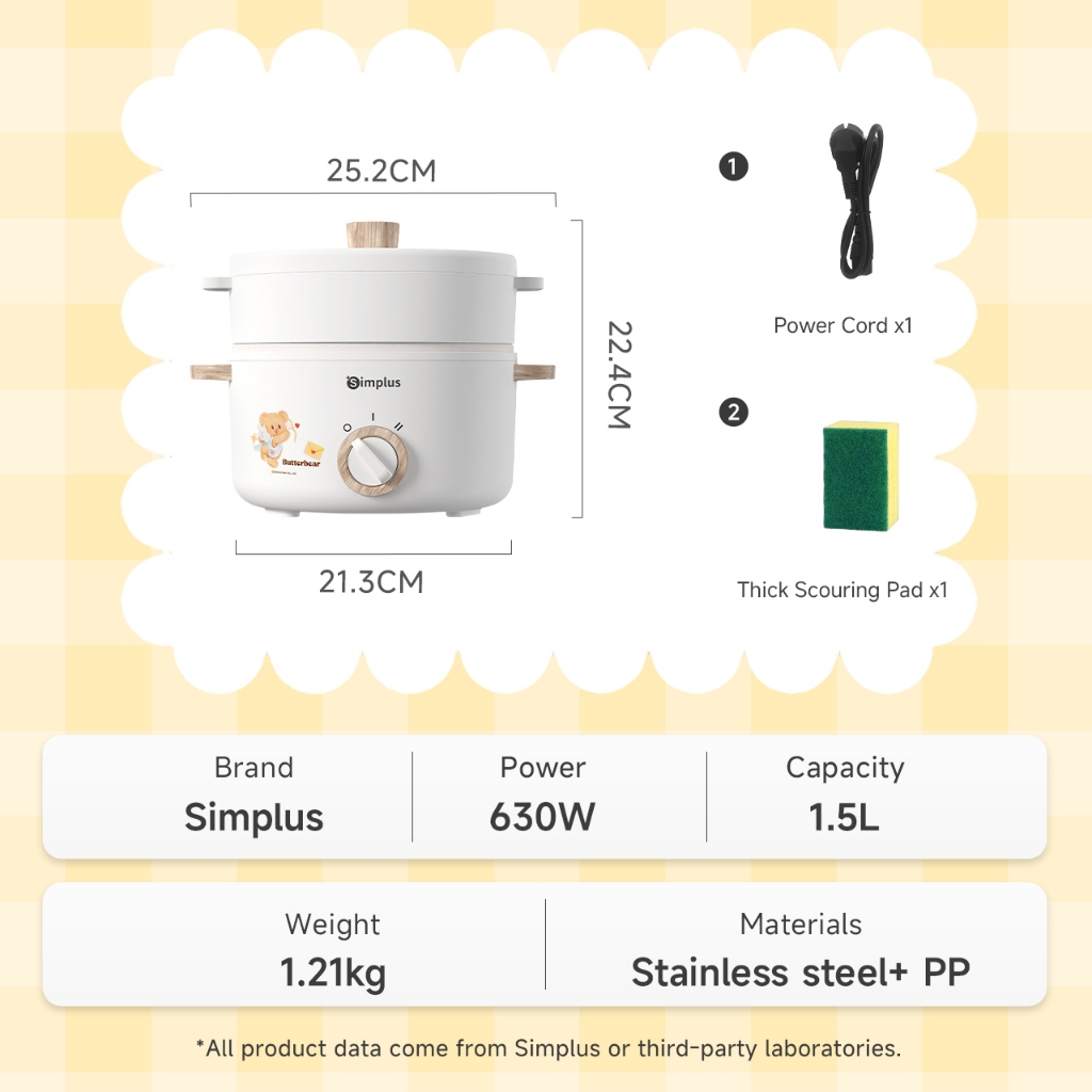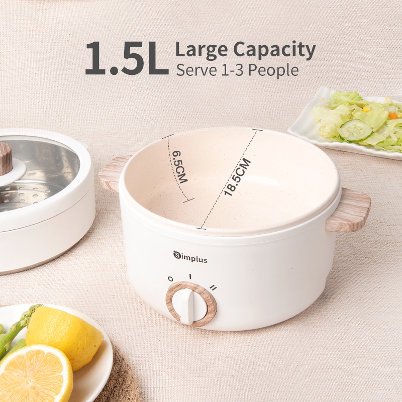 Simplus 1.5L Multi Electric Cooker with Steamer | 630W Quick Heating | Ceramic Coating丨Auto Power-Off Protection DZGH003