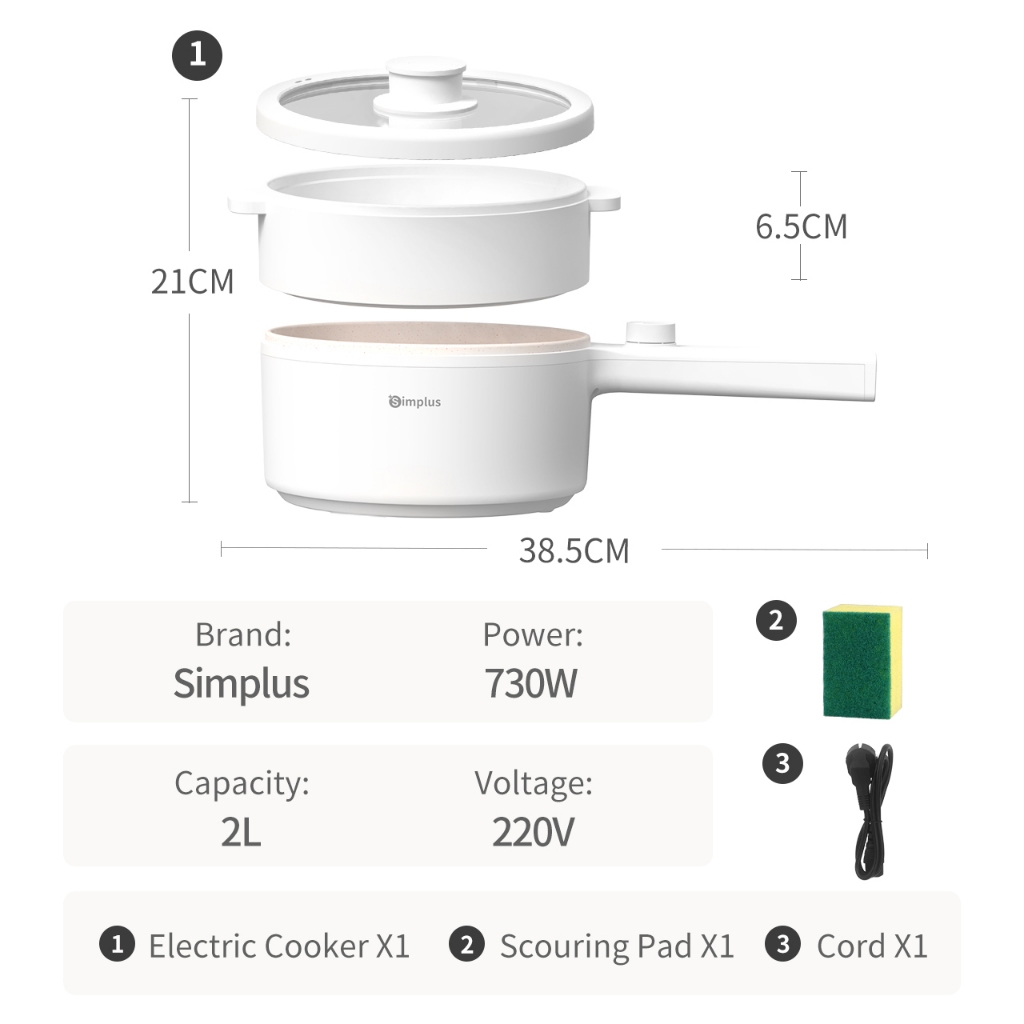 Simplus 1.5L Multi Electric Cooker With Steamer |630W Quick Heating| Ceramic Glaze Coating | Long Handle Design DZGH002