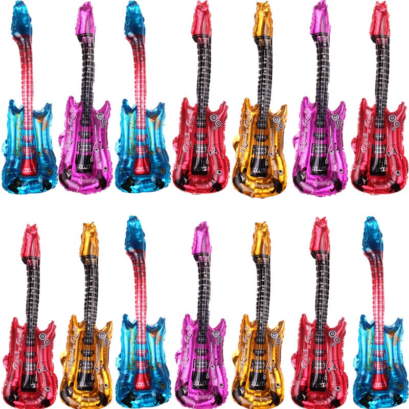 Simulated Musical Instrument Inflatable Balloon PVC Guitar Microphone Radio Skate Balloon Children's Birthday Concert Party Decoration