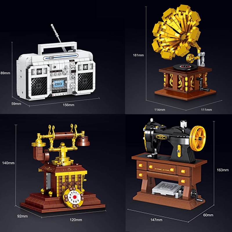 Simulation Retro Brick Mini Radio Building Blocks Sewing Machine Gramophone REALISTIC REDUCTION Toys Gifts Decor