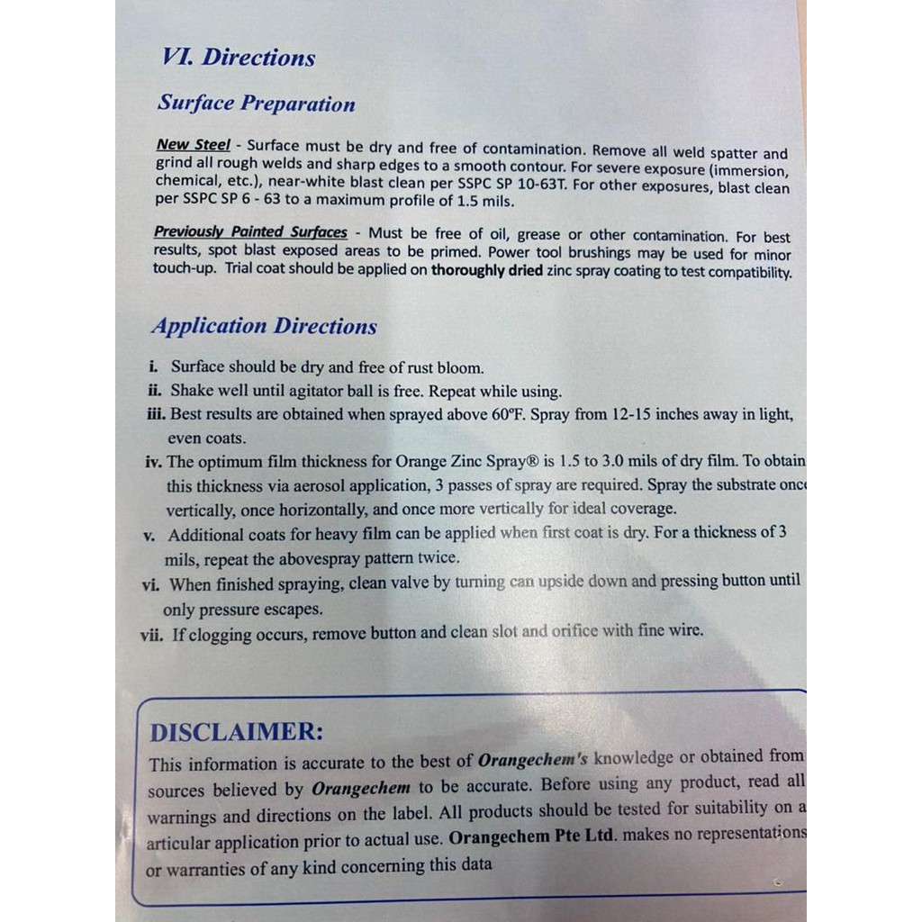 Singapore Orange Zinc-Rich Galvanizing Spray 400ml Coating Metal from oxidize Protect Metal Quick Dry Zinc Paint