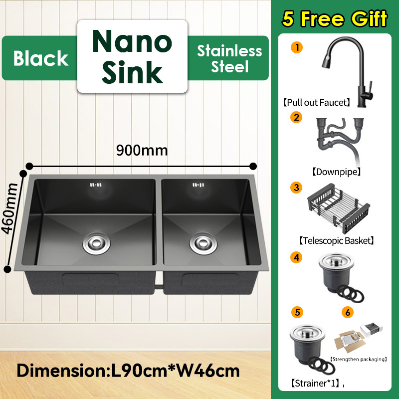 Sink Dapur 304 Stainless Nano Sinki Paip Dapur Kitchen Faucet Double Single Bowl Basin Dishwashing水槽
